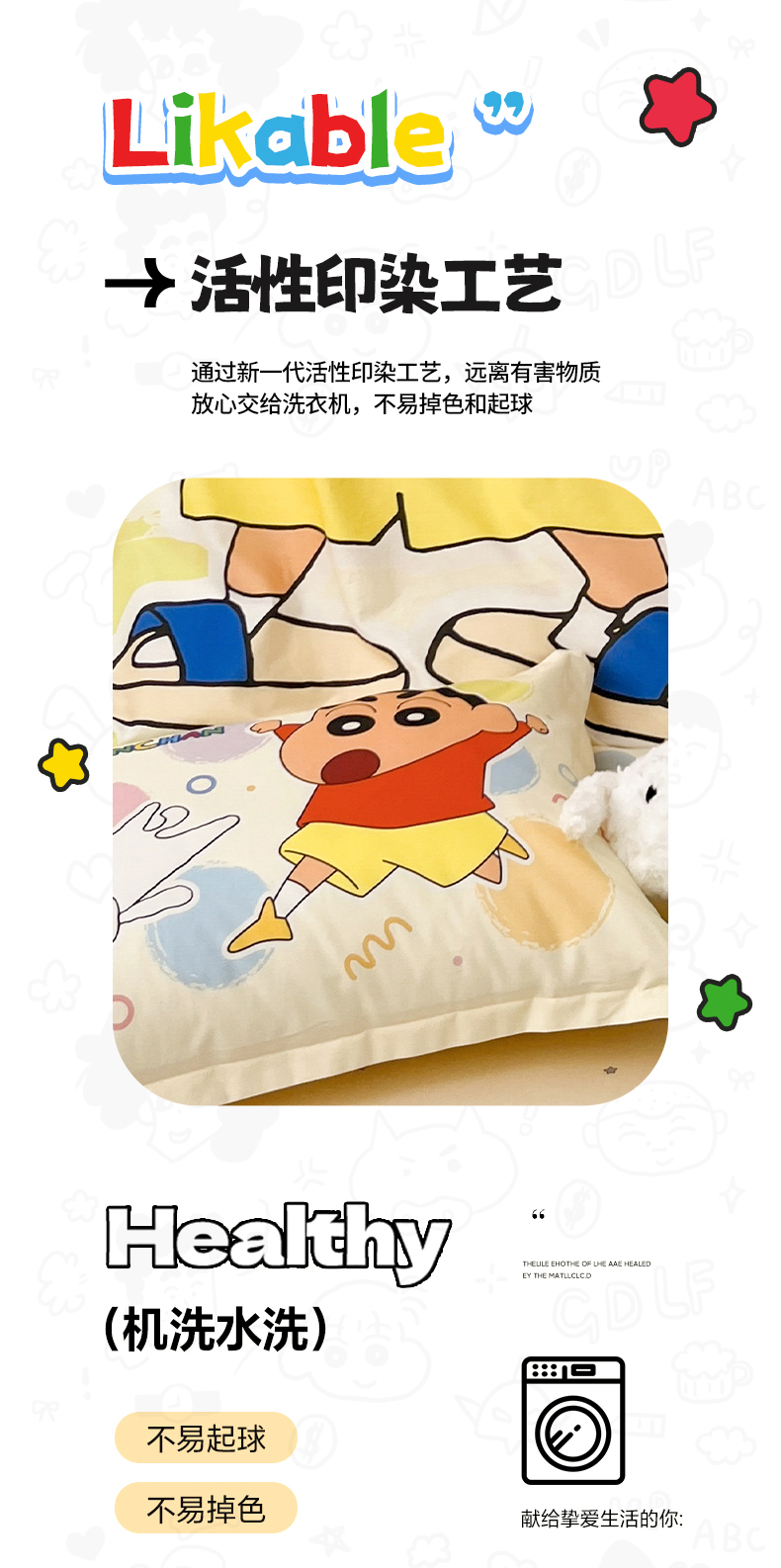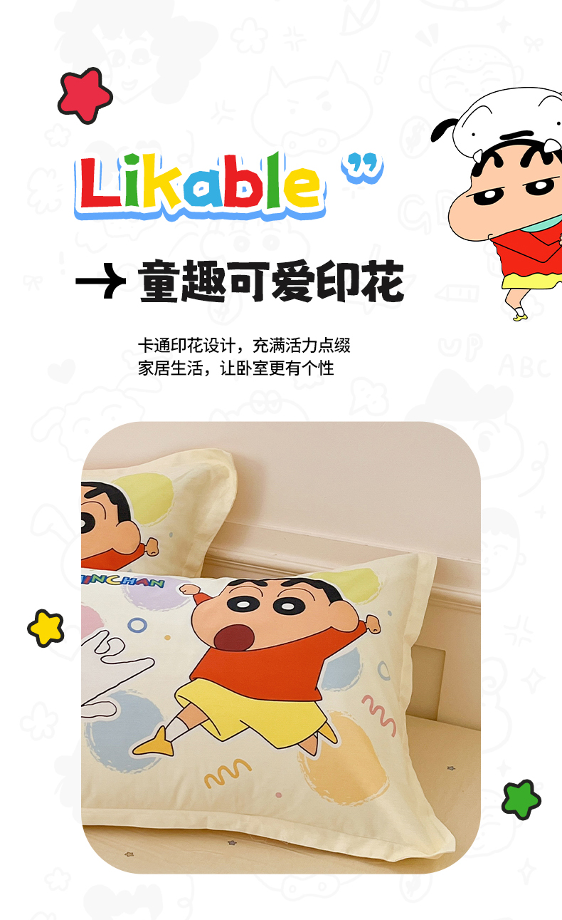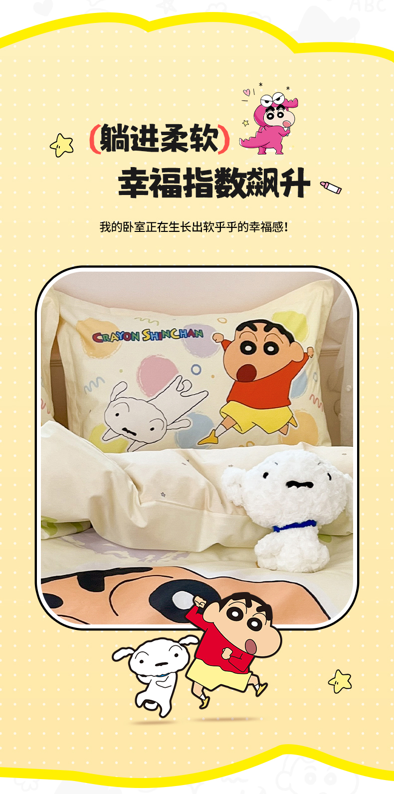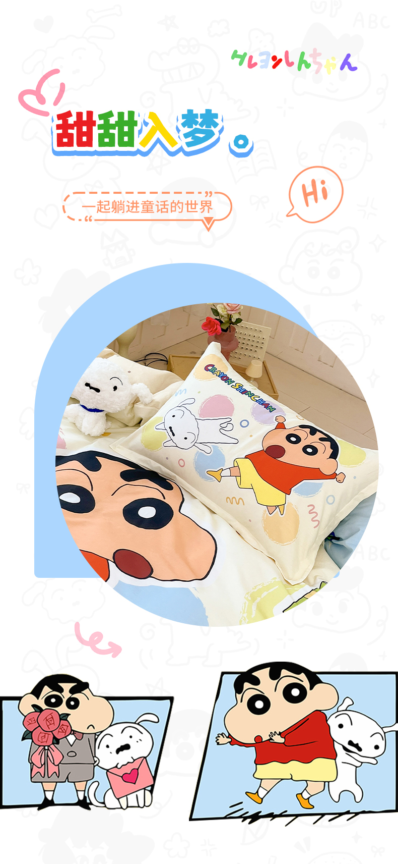 • 91家纺网 家纺一手货源 找家纺 博雅 2026新款蜡笔小新正版授权全棉纯棉大版枕套单品枕套枕套单件 大版-彩色圈圈蜡笔小新