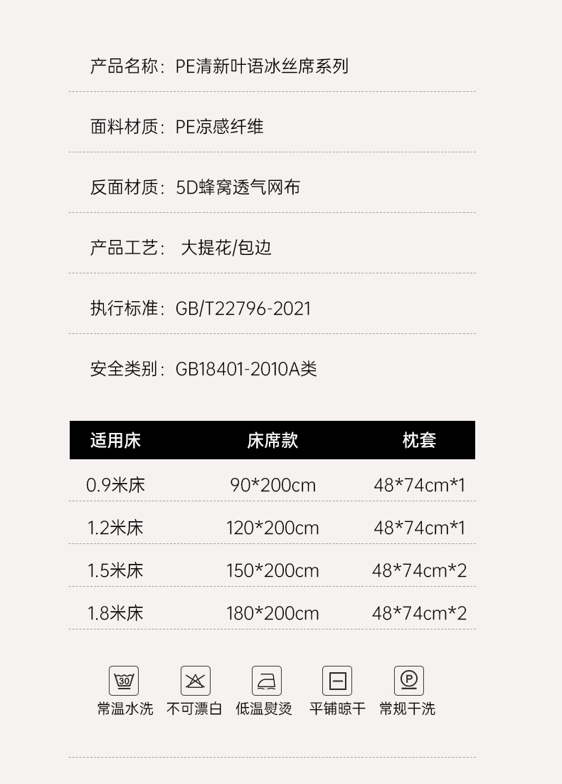 商品名称:小牛席业 2026新款【建模风格】PE清新叶语冰丝席席子凉席 灰色