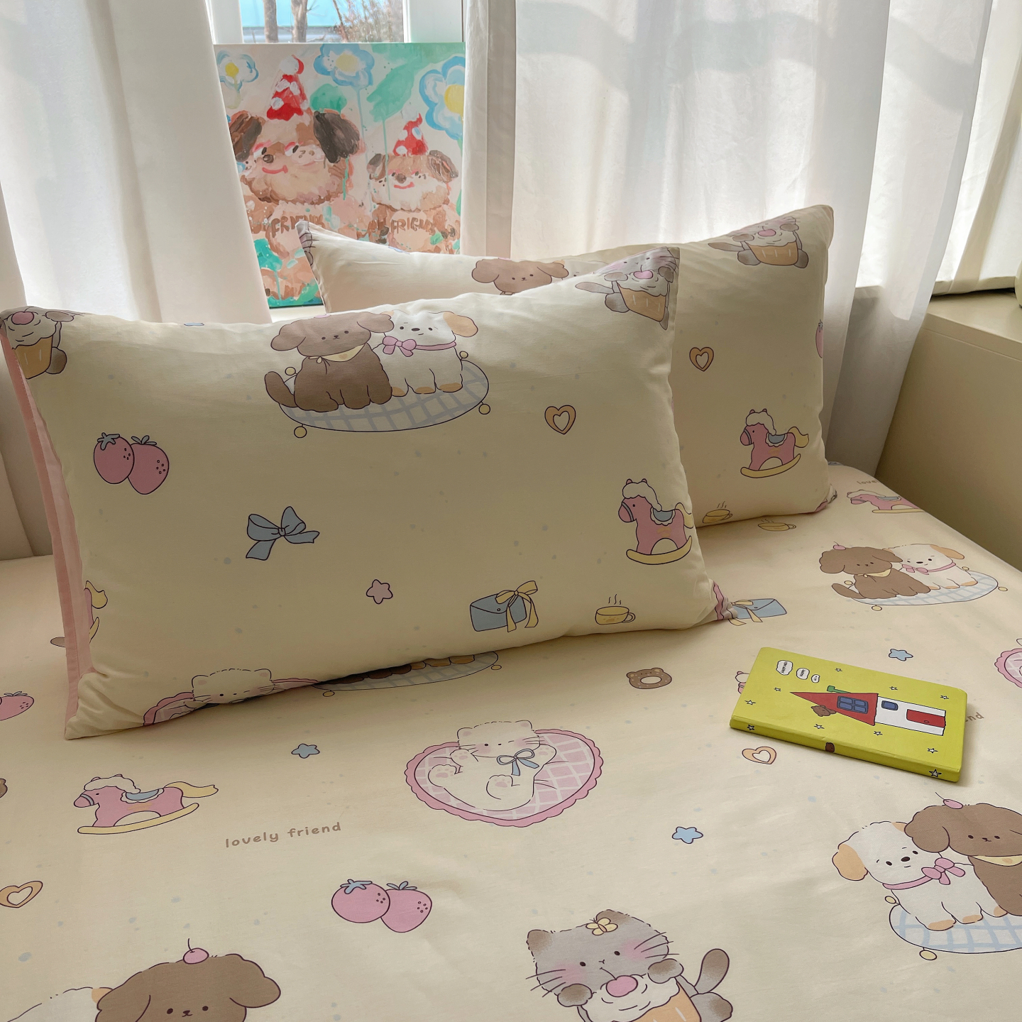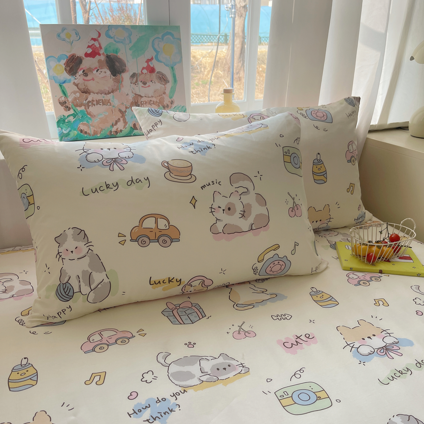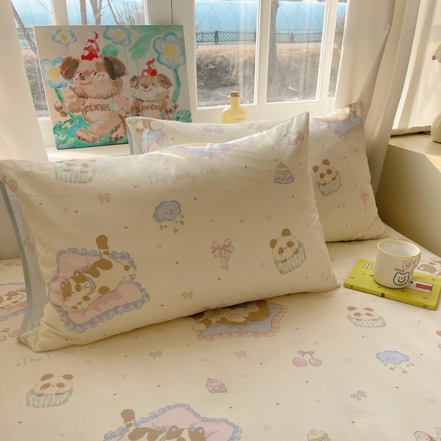 (总)六巷胡同 2025新款 INS减龄可爱风卡通全棉四件套第五系(森林音乐会系列),波点嘟嘟猫,点点面包犬,调皮蔷薇狗,哈喽泡芙猫,蓝格插画犬,森林音乐会