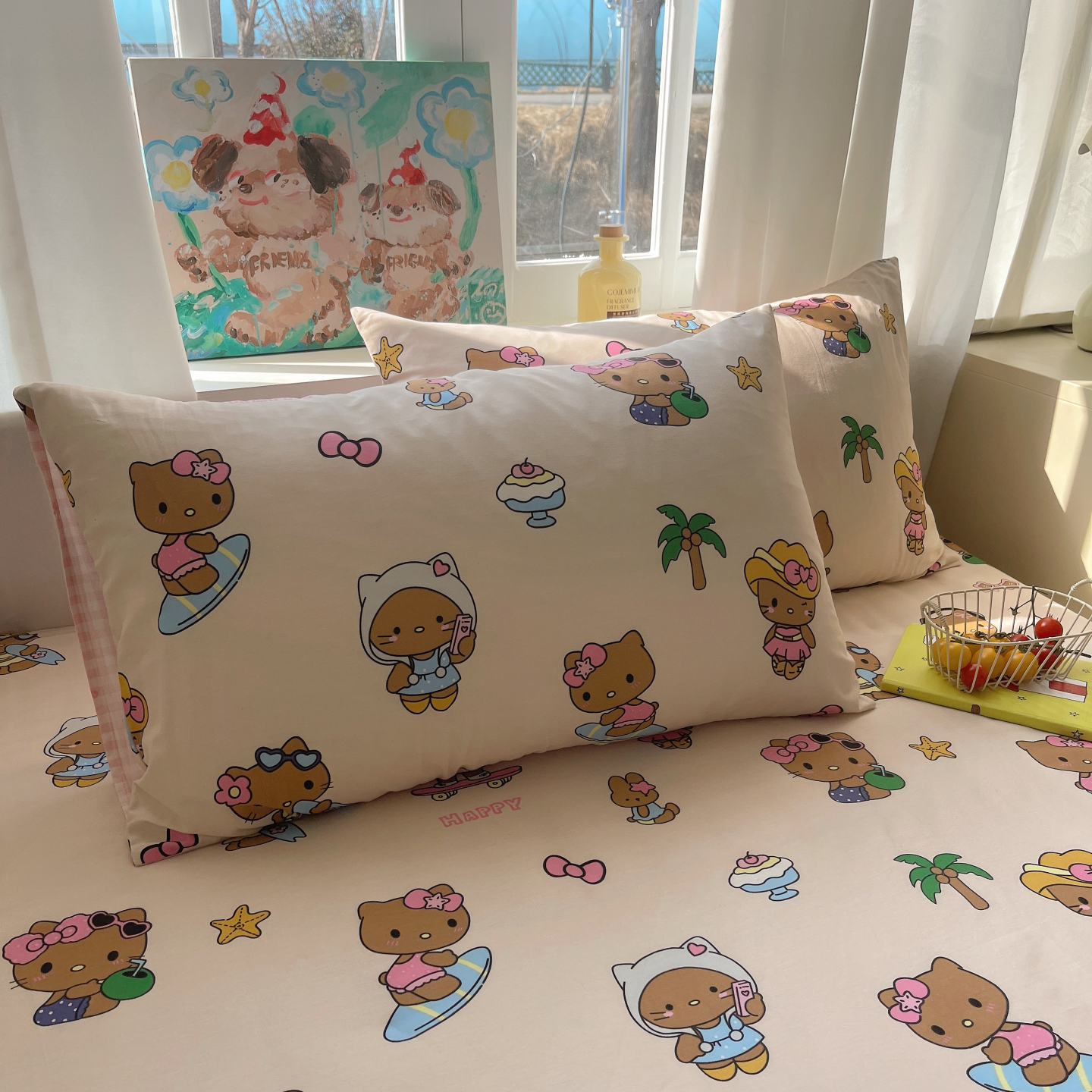 (总)六巷胡同 2025新款INS童趣可爱风卡通全棉四件套-第四系,彩虹甜筒猫,草莓害羞喵,粉格元气猫,咖格樱桃狗,蓝格嗨皮狗,圣诞麋鹿狗,仙人掌粉象,熊熊猫咪崽
