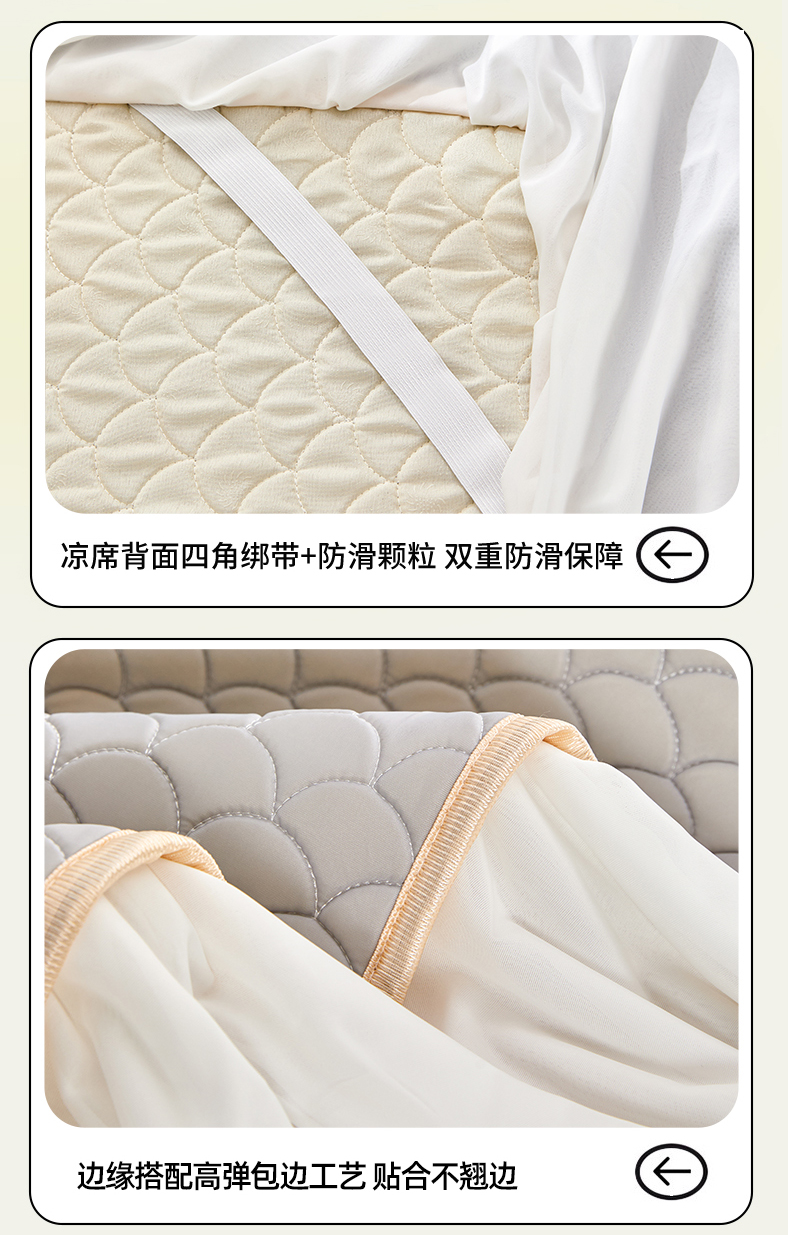 (总)羽梦家纺 2026新款凉席床裙款银丝凉席席子,高级灰,玫瑰金,天空蓝,樱花粉