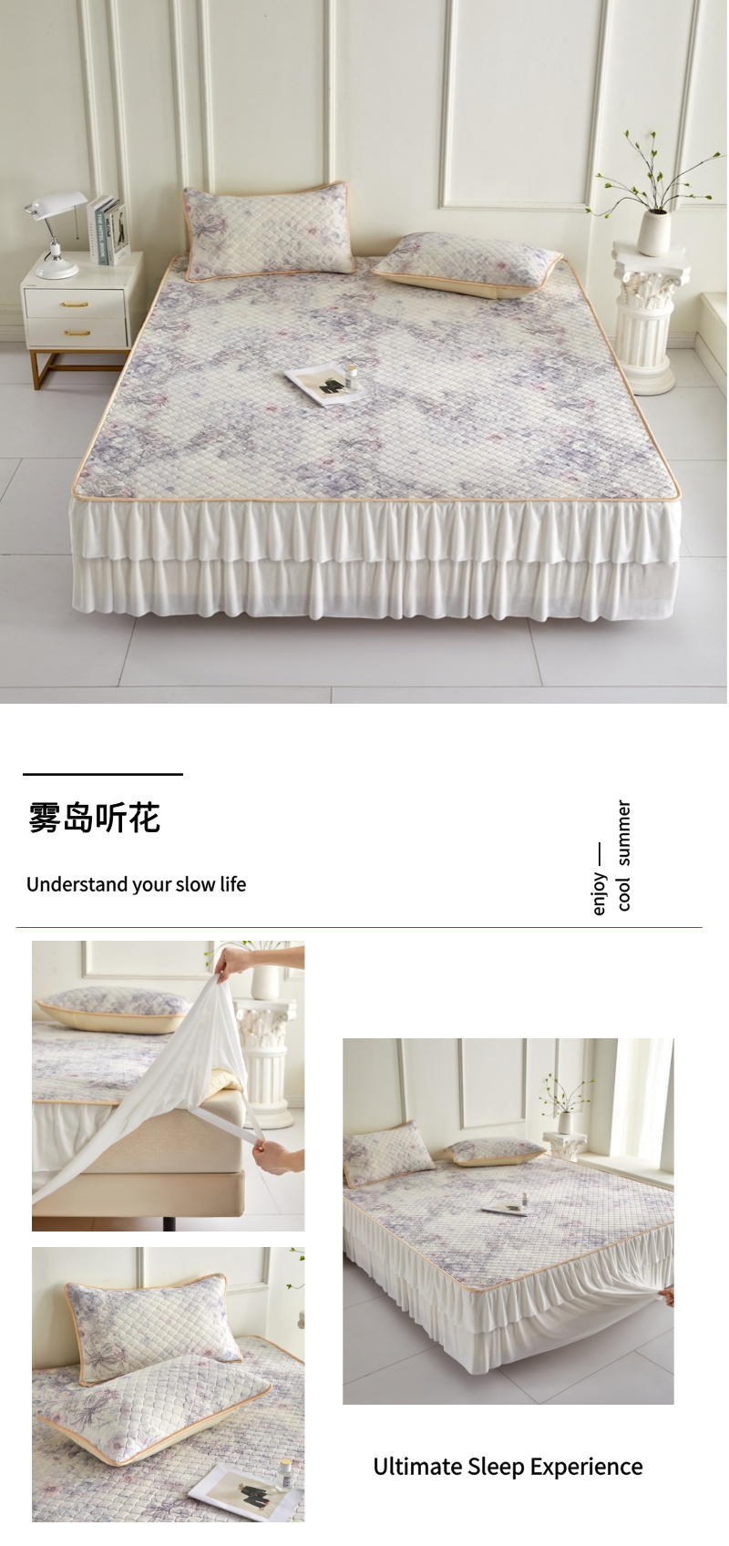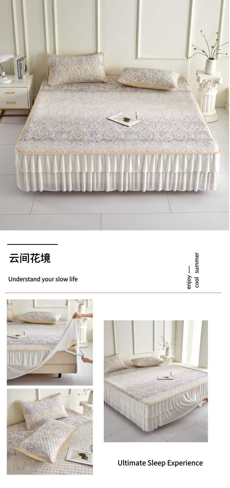 (总)羽梦家纺 2026新款硅胶床裙款凉席席子,深睡蓝,青空灰,柔云粉,淡蓝色,元气小熊,雾岛听花,雾粉花眠,雾里看花,云间花境