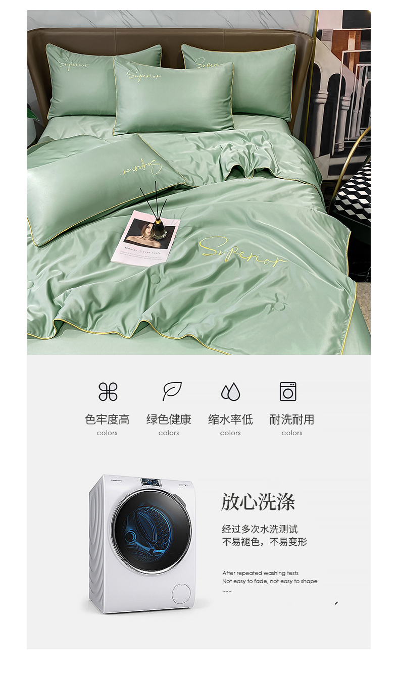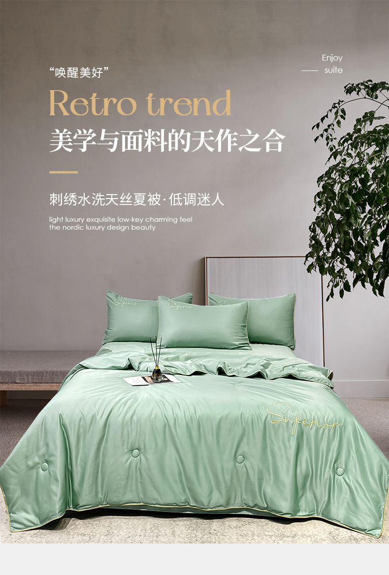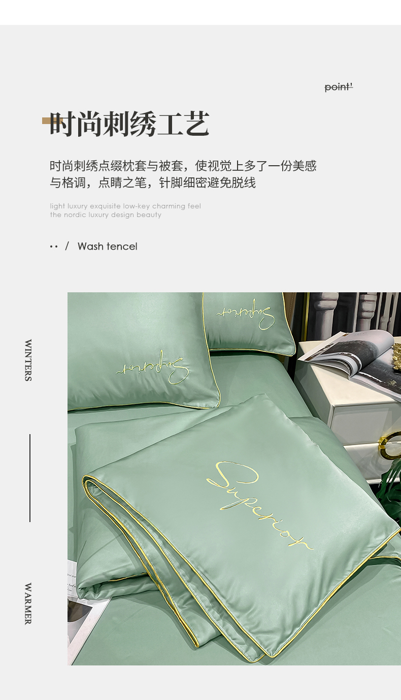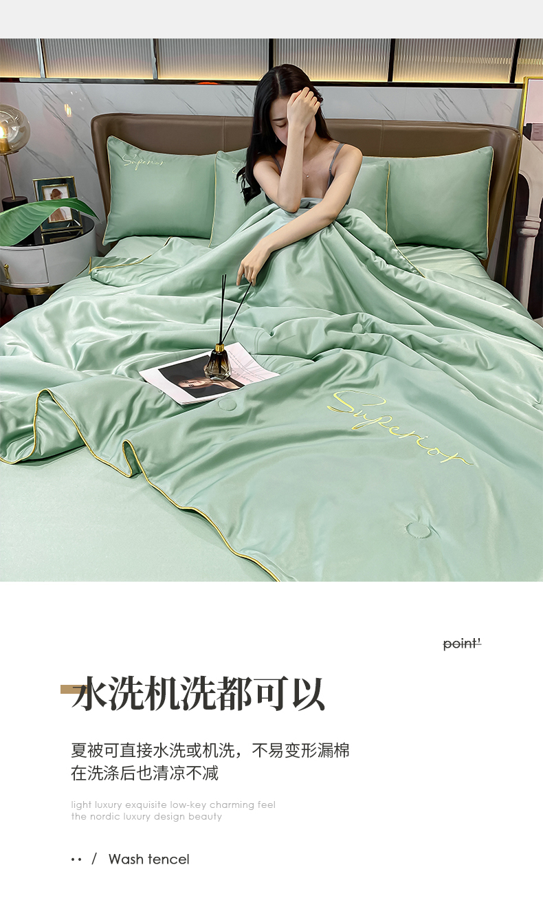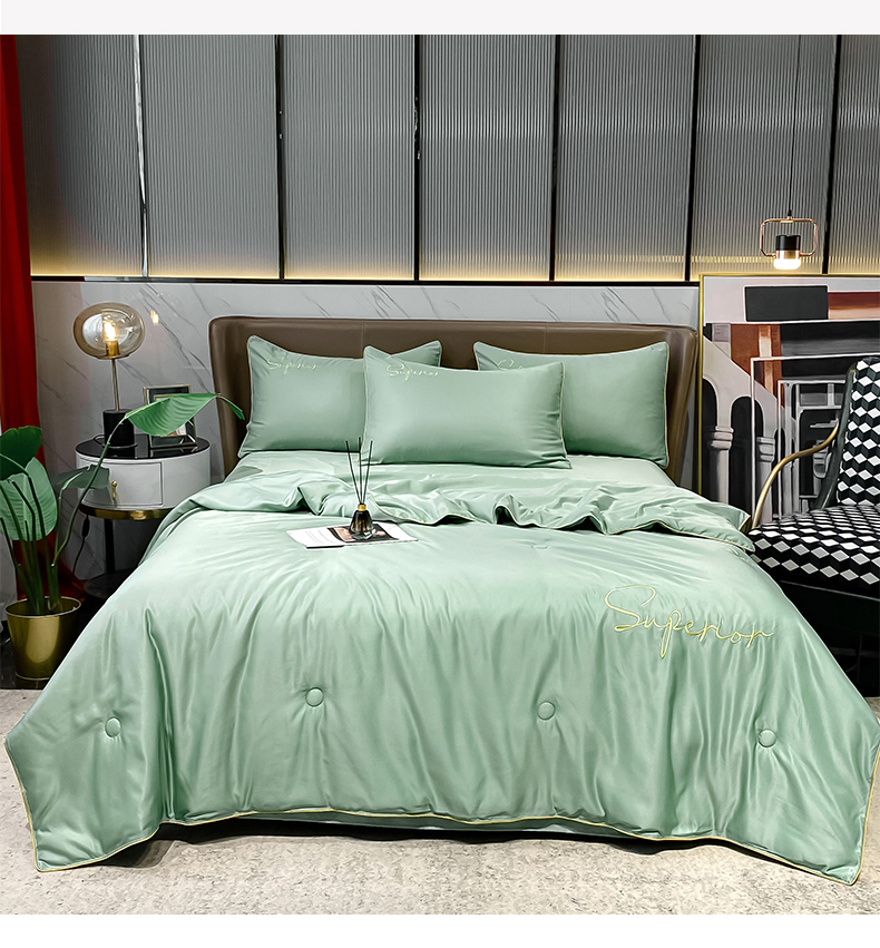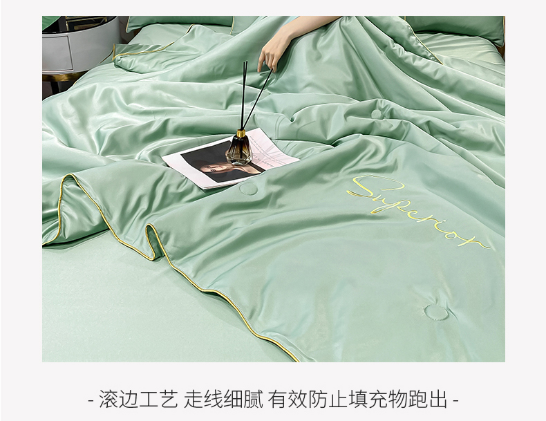 • 91家纺网 家纺一手货源 找家纺 吾秀家居 2026新款字母刺绣水洗天丝夏被夏凉被空调被四件套-字母 字母琉璃绿