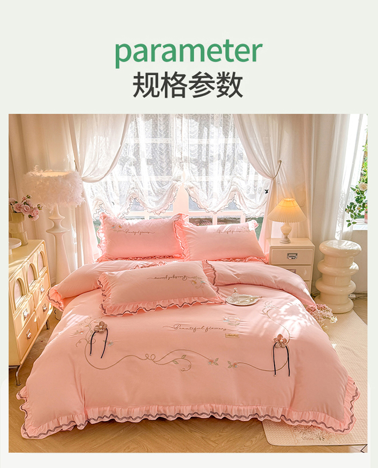 (总)(总)专柜品质苏米娜家纺2026春夏韩版法式公主风水洗棉床盖款多功能二合一被套 夏被床盖四件套--花颜系列,花颜-樱花粉 ,花颜-梦幻蓝 ,花颜-奶油白 ,花颜-嫩芽绿 ,花颜-香芋紫