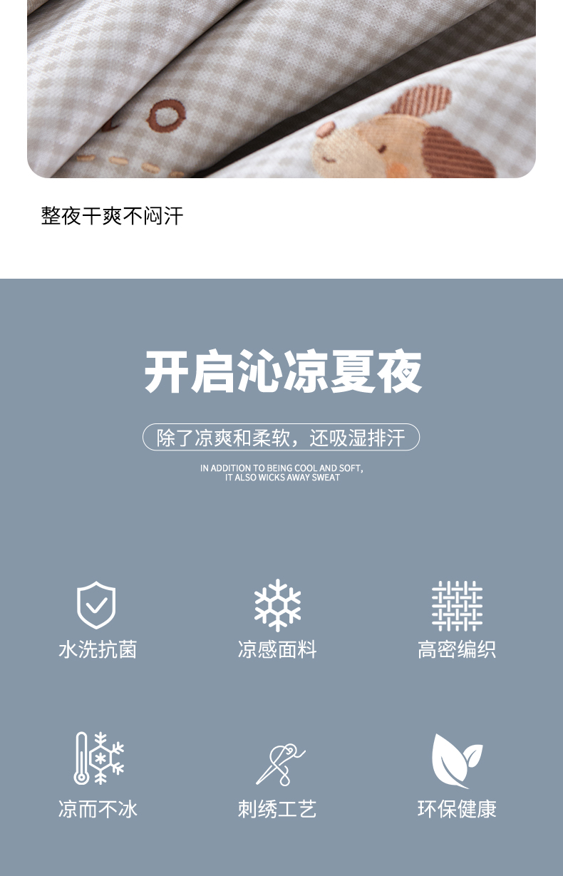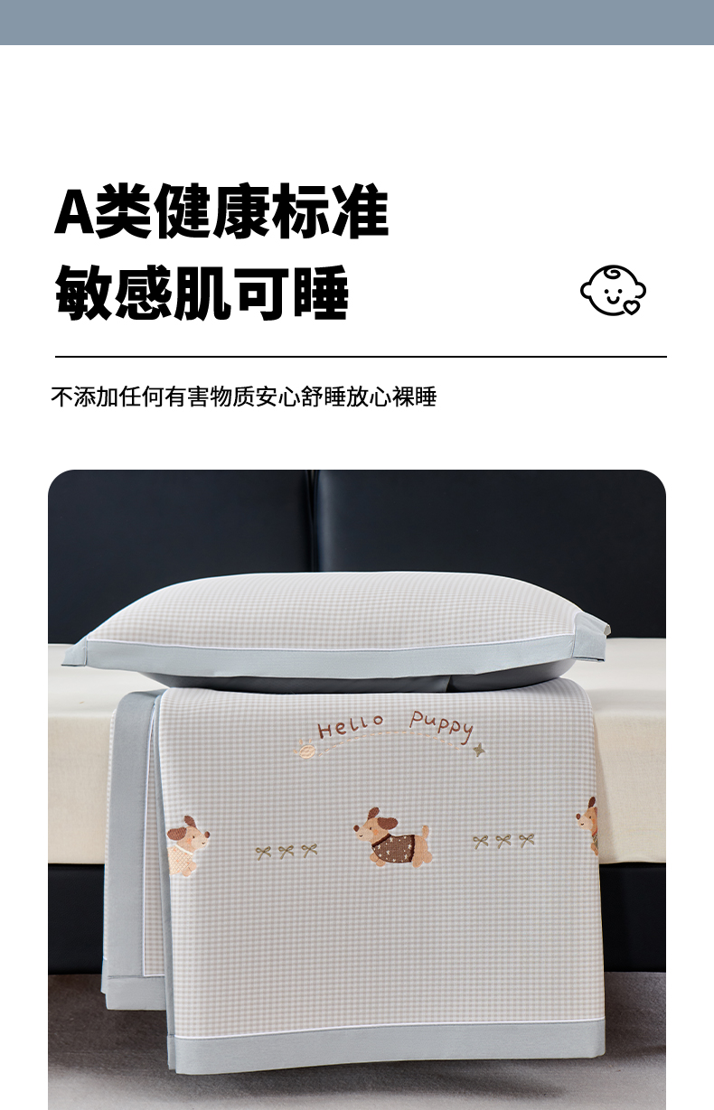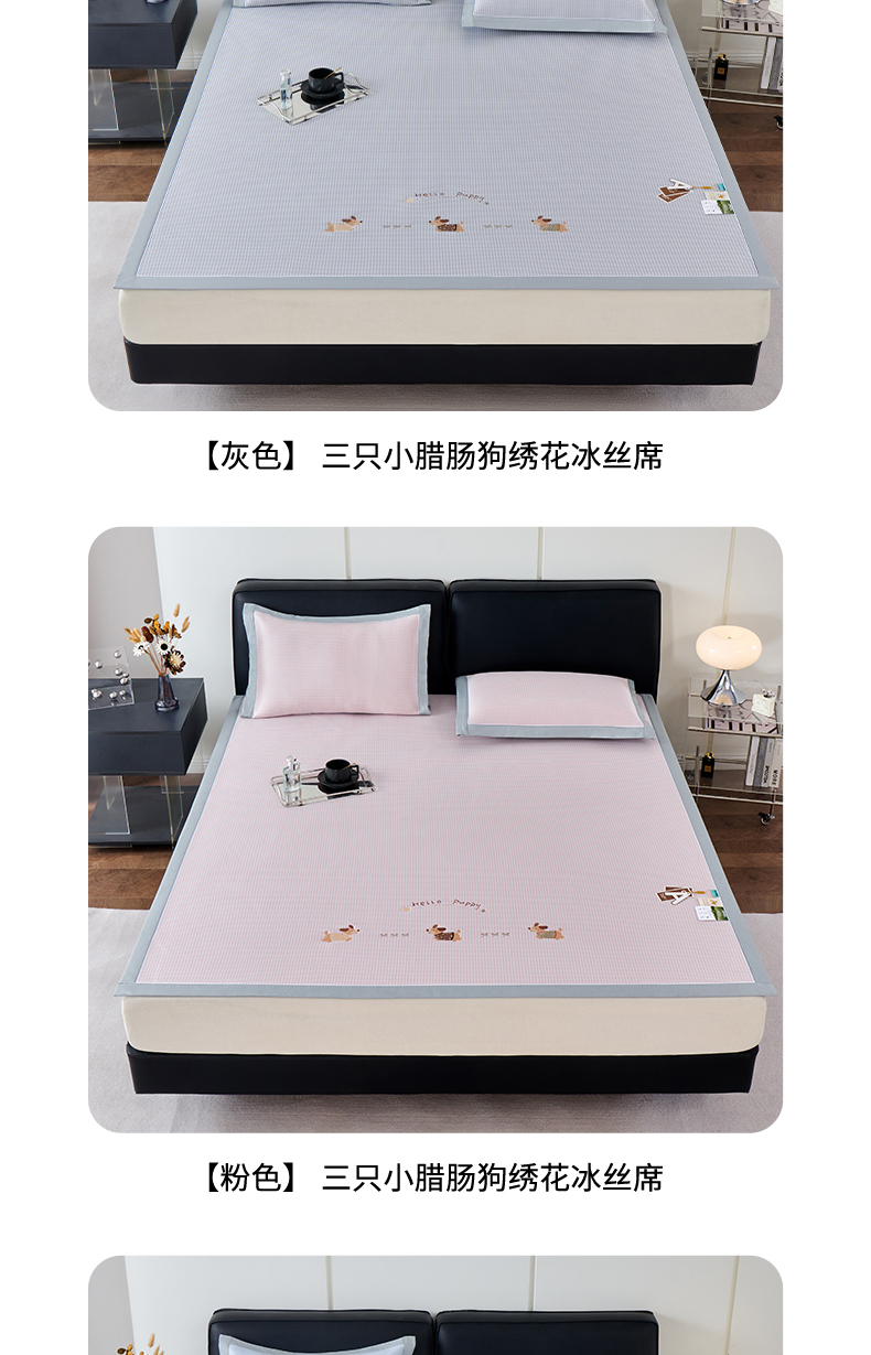 商品名称:小牛席业 2026新款腊肠狗绣花凉感冰丝席凉席席子 腊肠狗-蓝色