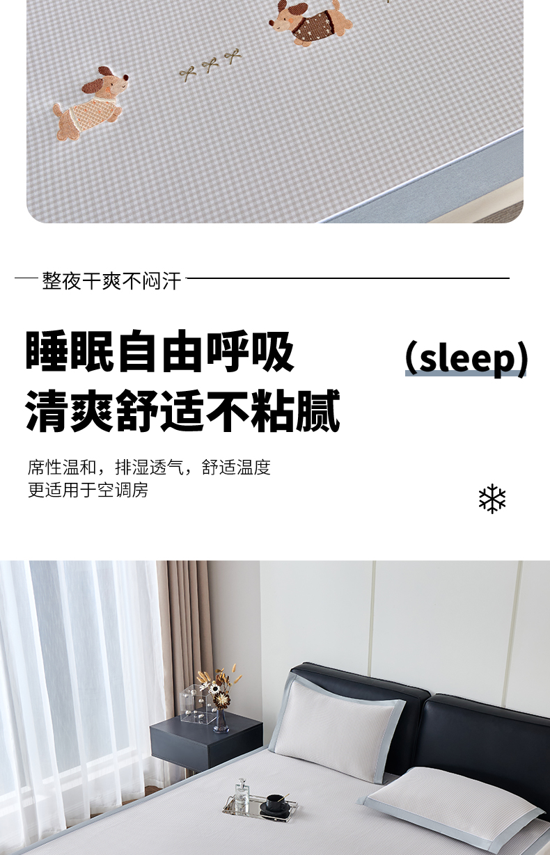 小牛席业 2026新款腊肠狗绣花凉感冰丝席凉席席子 腊肠狗-蓝色