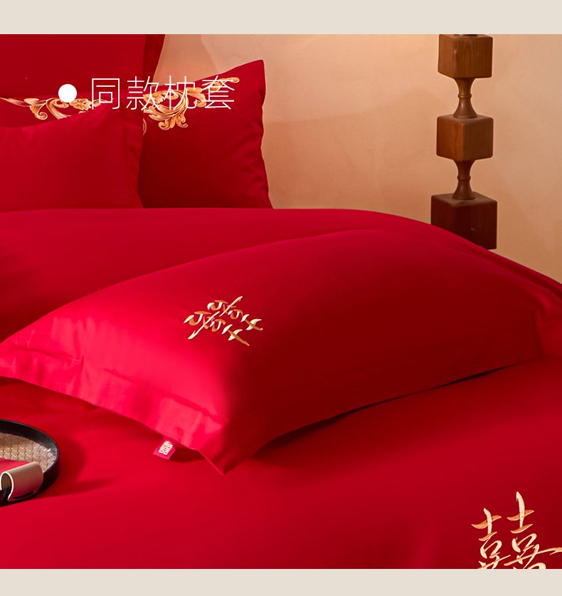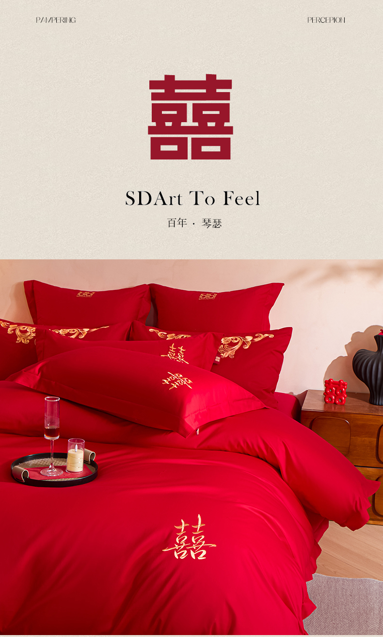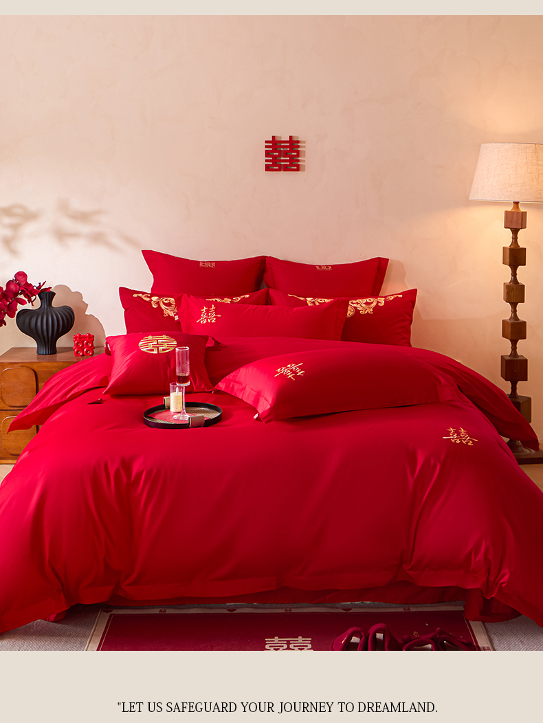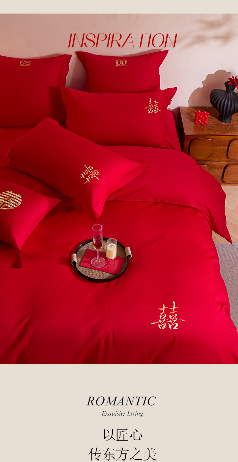 当前位置: 91家纺网 > 商品网购 > 床品套件 > 多件套 > 多件套 > 东方合美(原:皇家传奇) 2026新款长绒棉轻奢婚庆四件套 添妆喜事