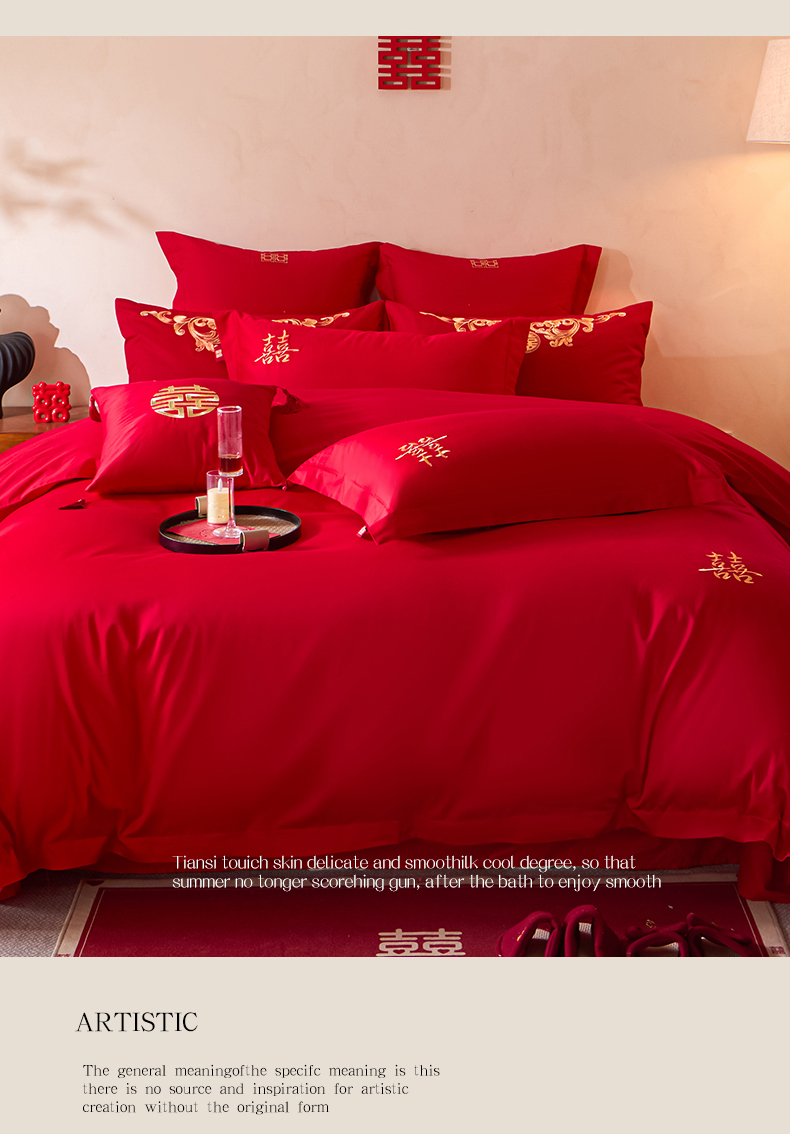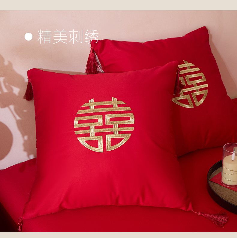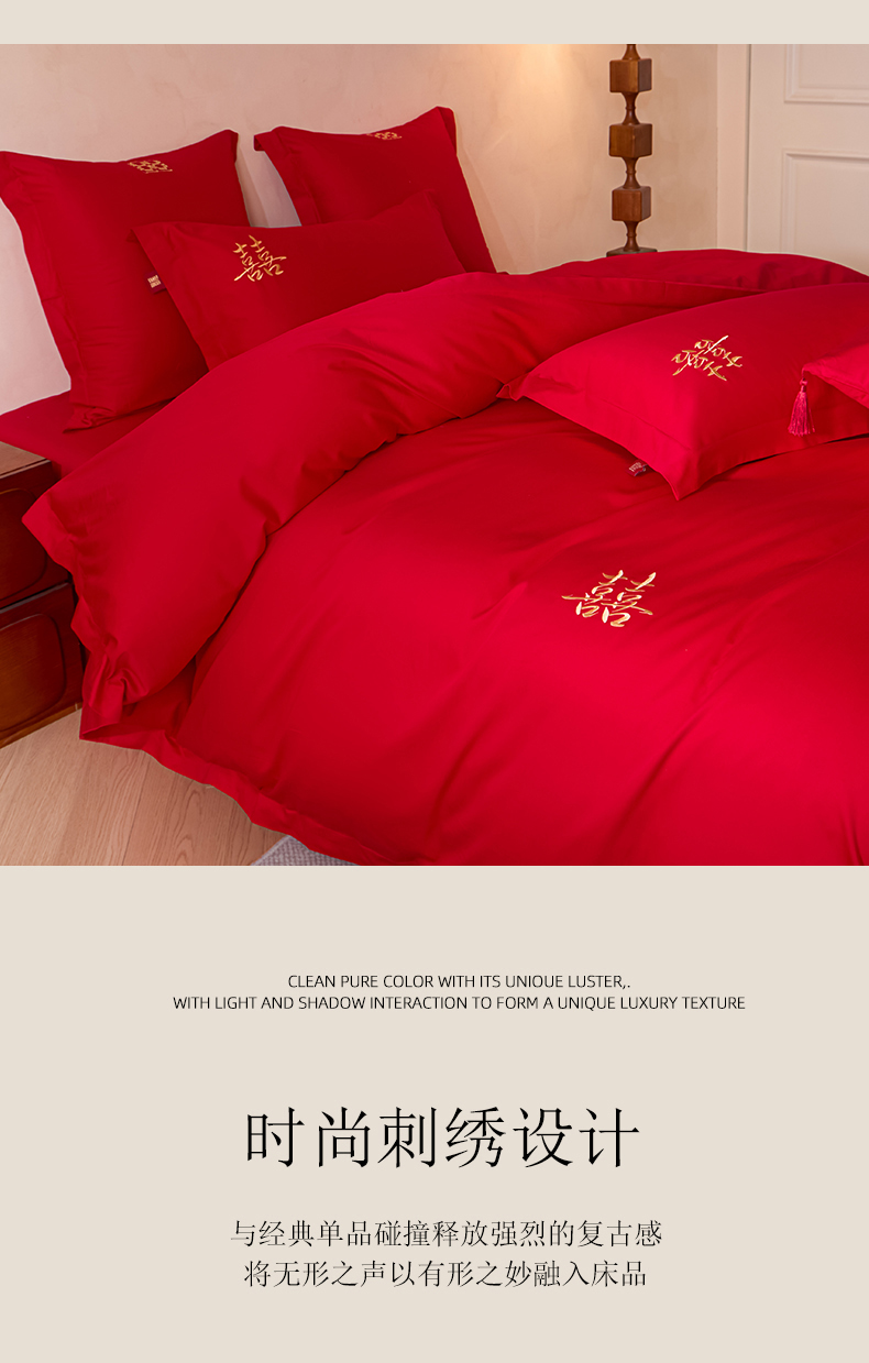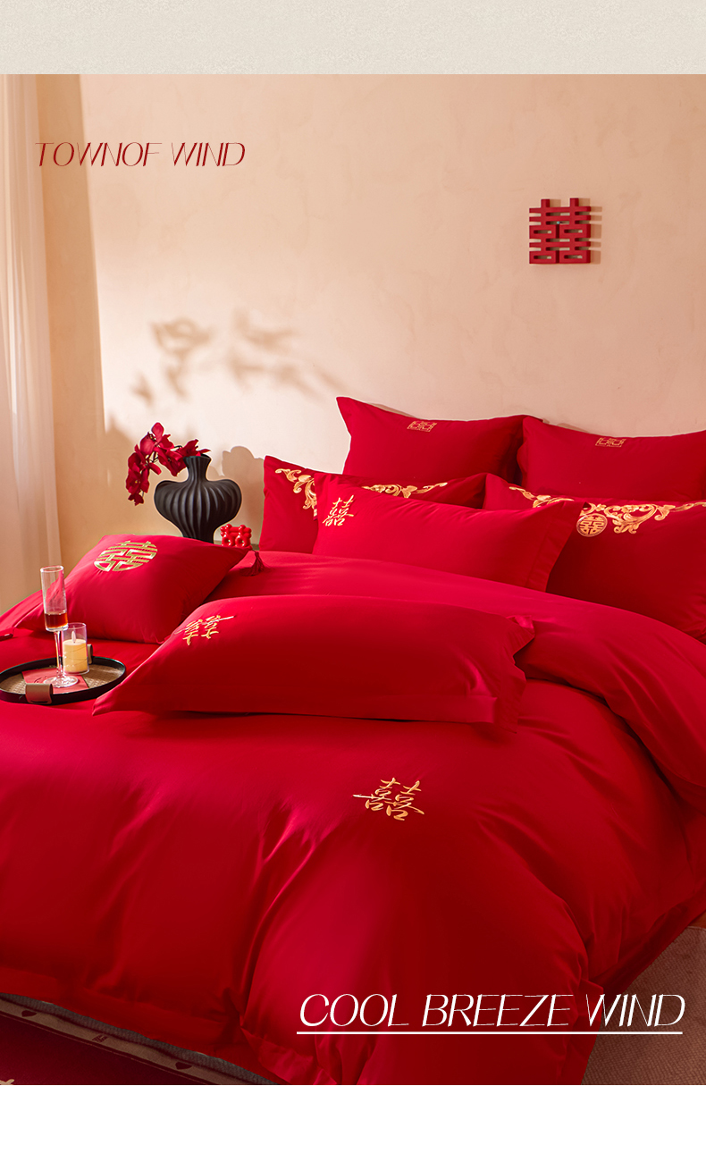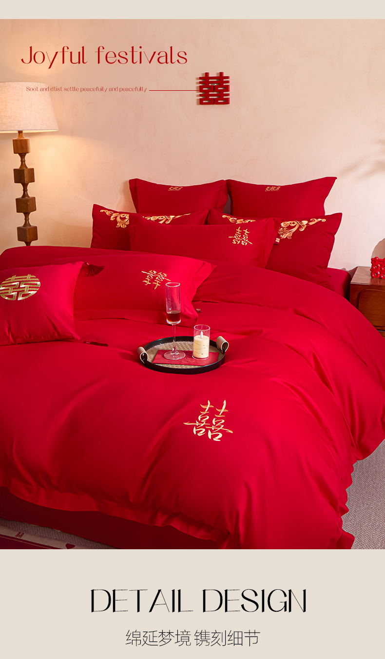 当前位置: 91家纺网 > 商品网购 > 床品套件 > 多件套 > 多件套 > 东方合美(原:皇家传奇) 2026新款长绒棉轻奢婚庆四件套 添妆喜事