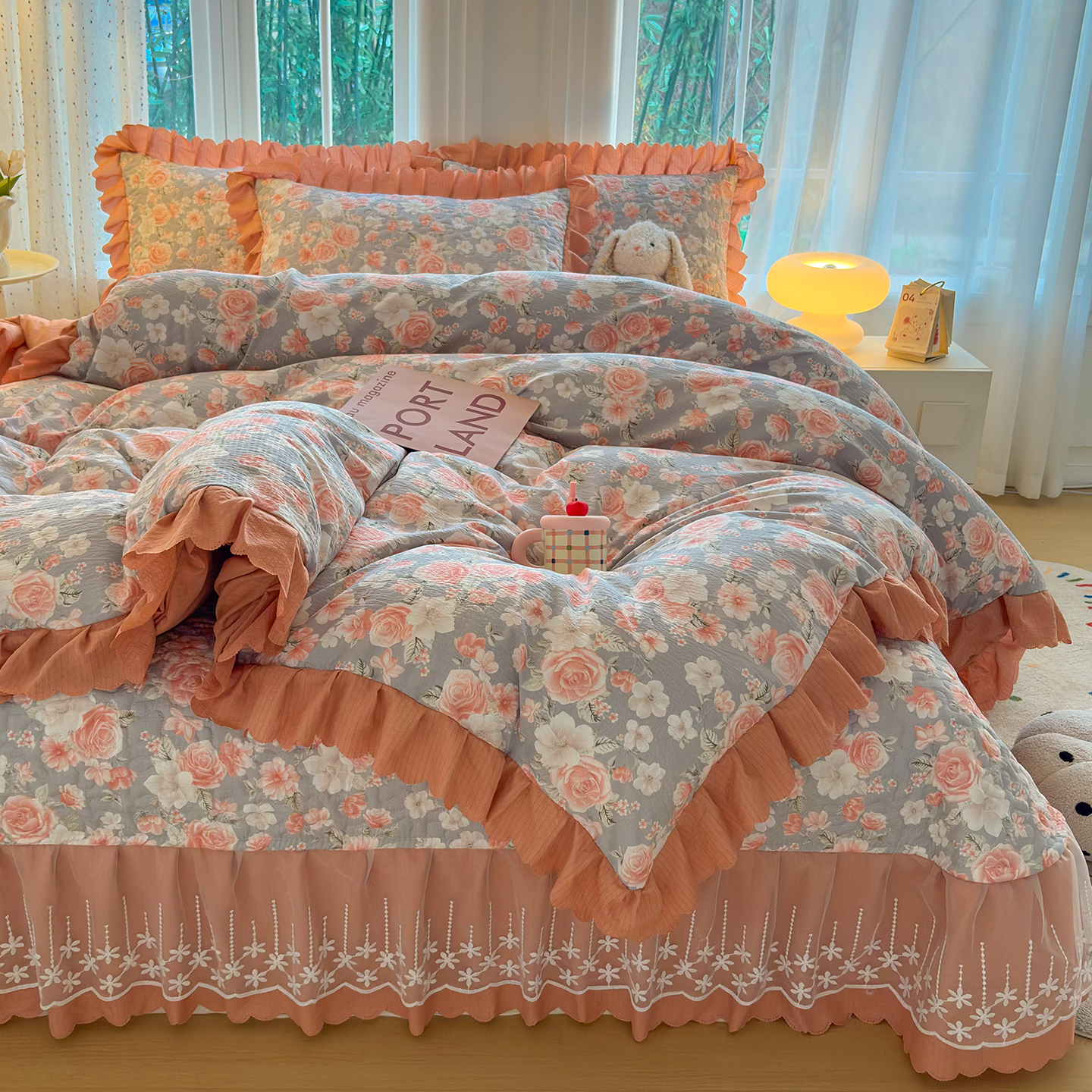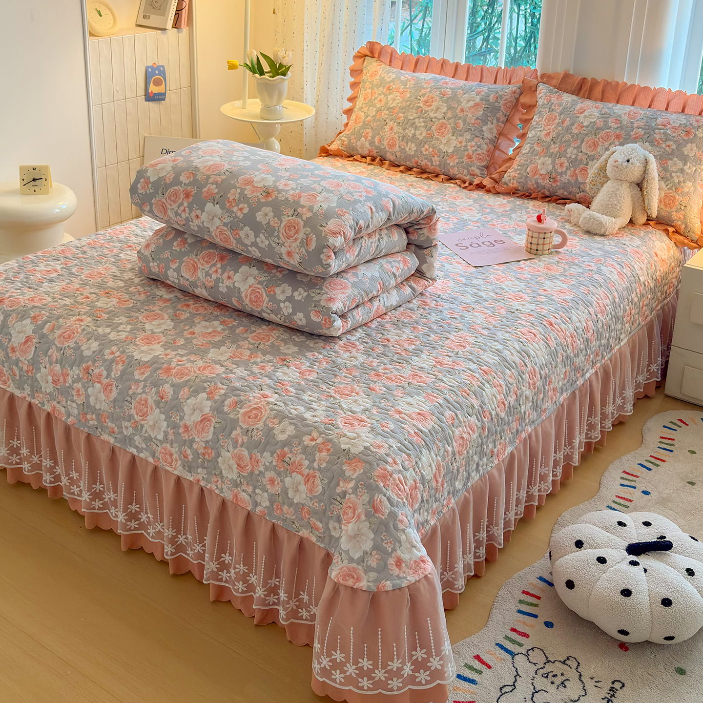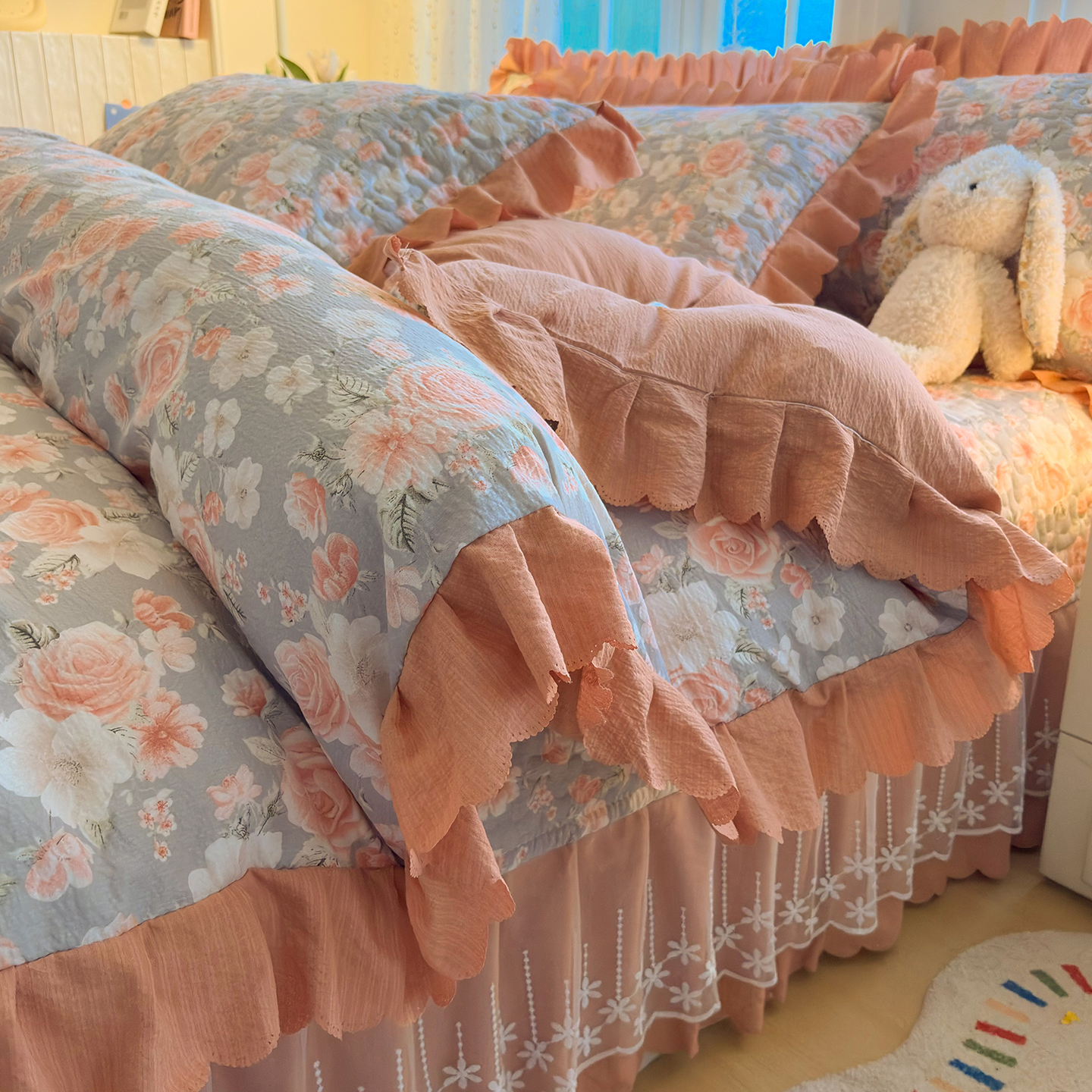 当前位置: 91家纺网 > 商品网购 > 床品套件 > 四件套 > 其它四件套 > 绒耀家纺 2026春夏直播爆款泡芙棉云感双层纱皱皱纱韩式花边床盖四件套 莫奈花园
