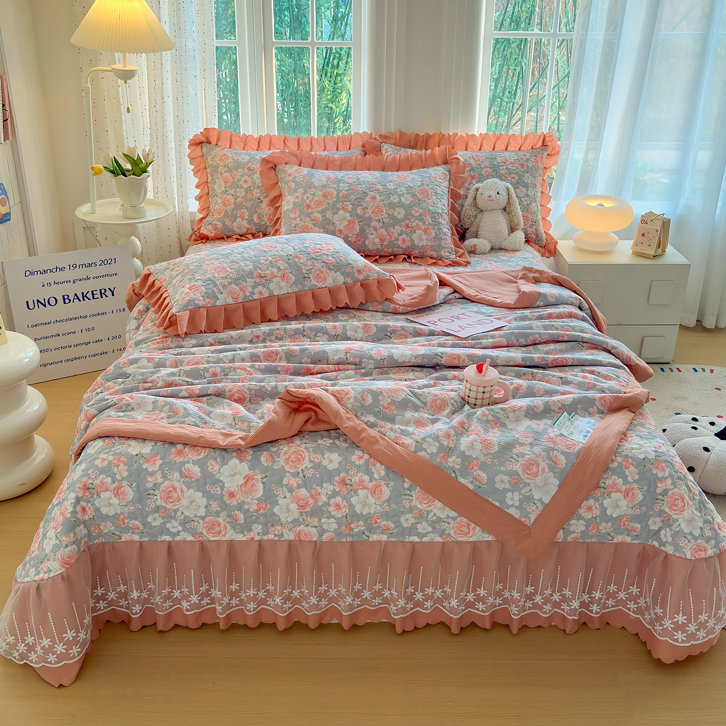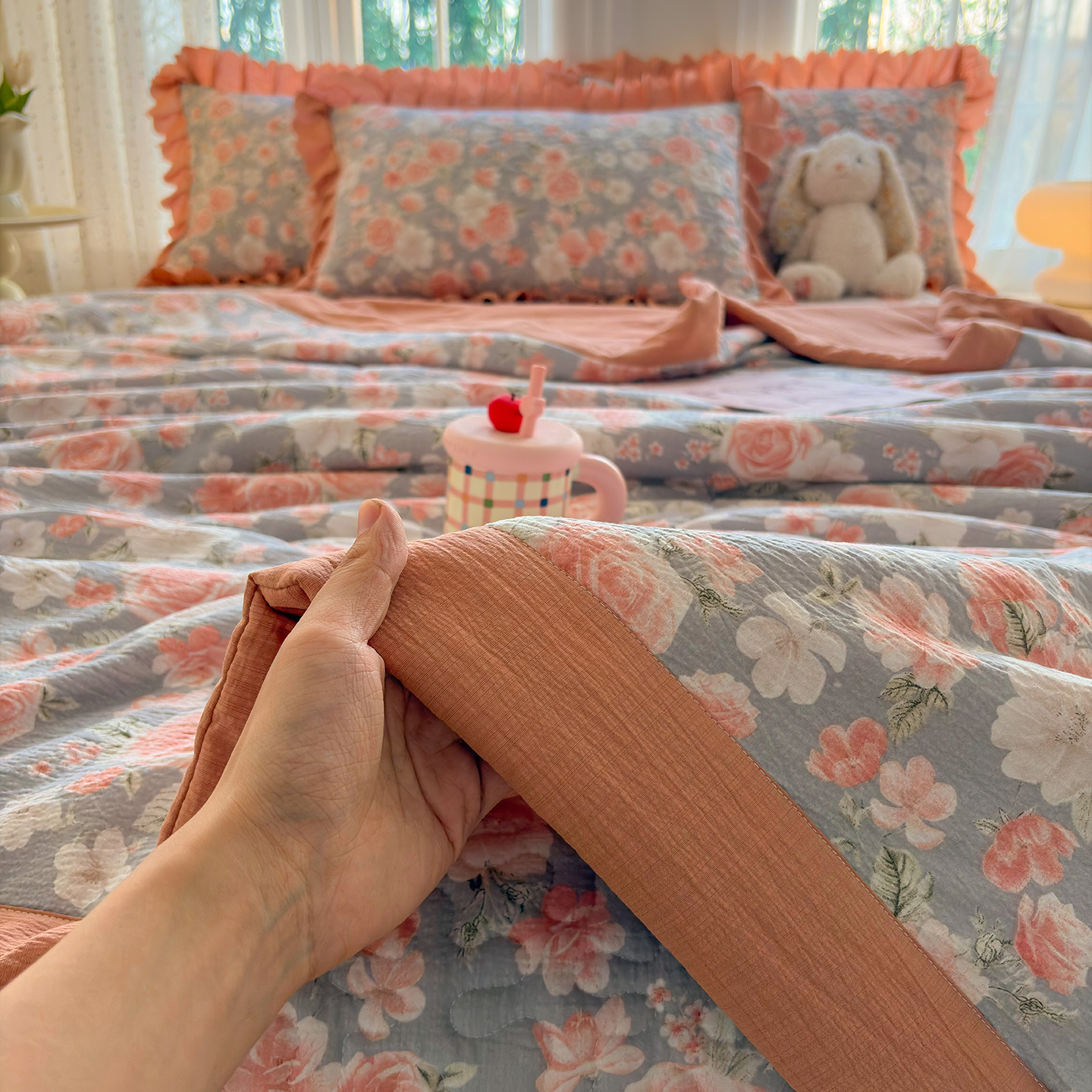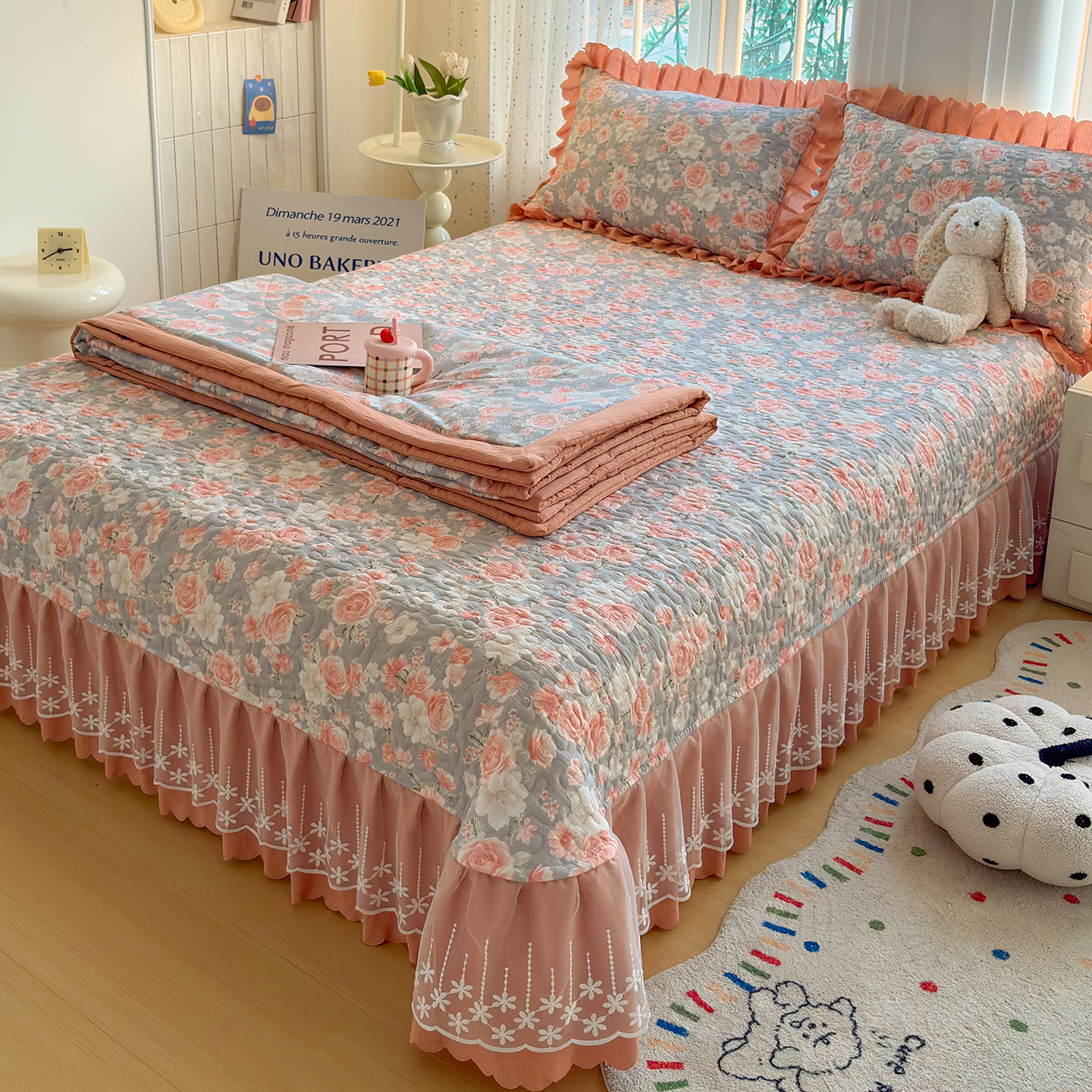 当前位置: 91家纺网 > 商品网购 > 床品套件 > 四件套 > 其它四件套 > 绒耀家纺 2026春夏直播爆款泡芙棉云感双层纱皱皱纱韩式花边床盖四件套 莫奈花园