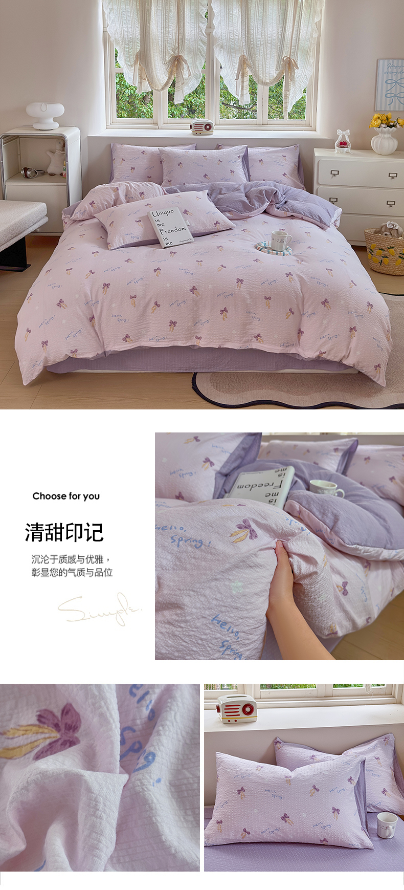 当前位置: 91家纺网 > 商品网购 > 床品套件 > 四件套 > 其它四件套 > 桔禾家纺 2026春夏新款小清新A类超柔泡芙棉泡泡纱双层纱四件套 花町软猫