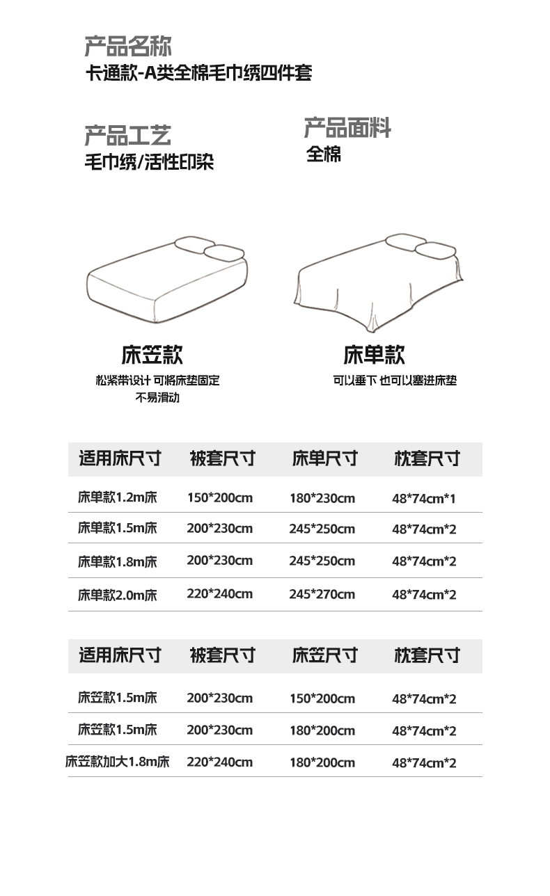 【床笠款】1.8四件套-被套200x230 | ¥170.00 |