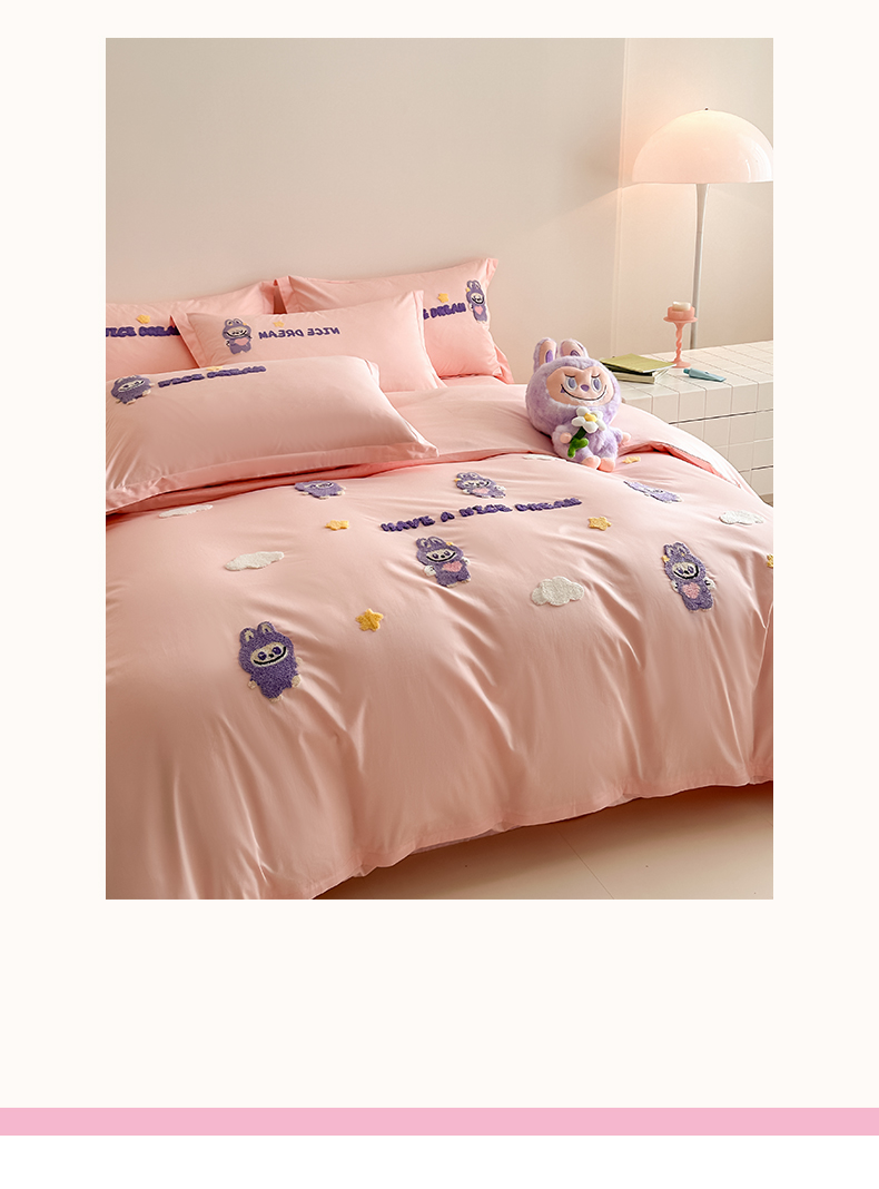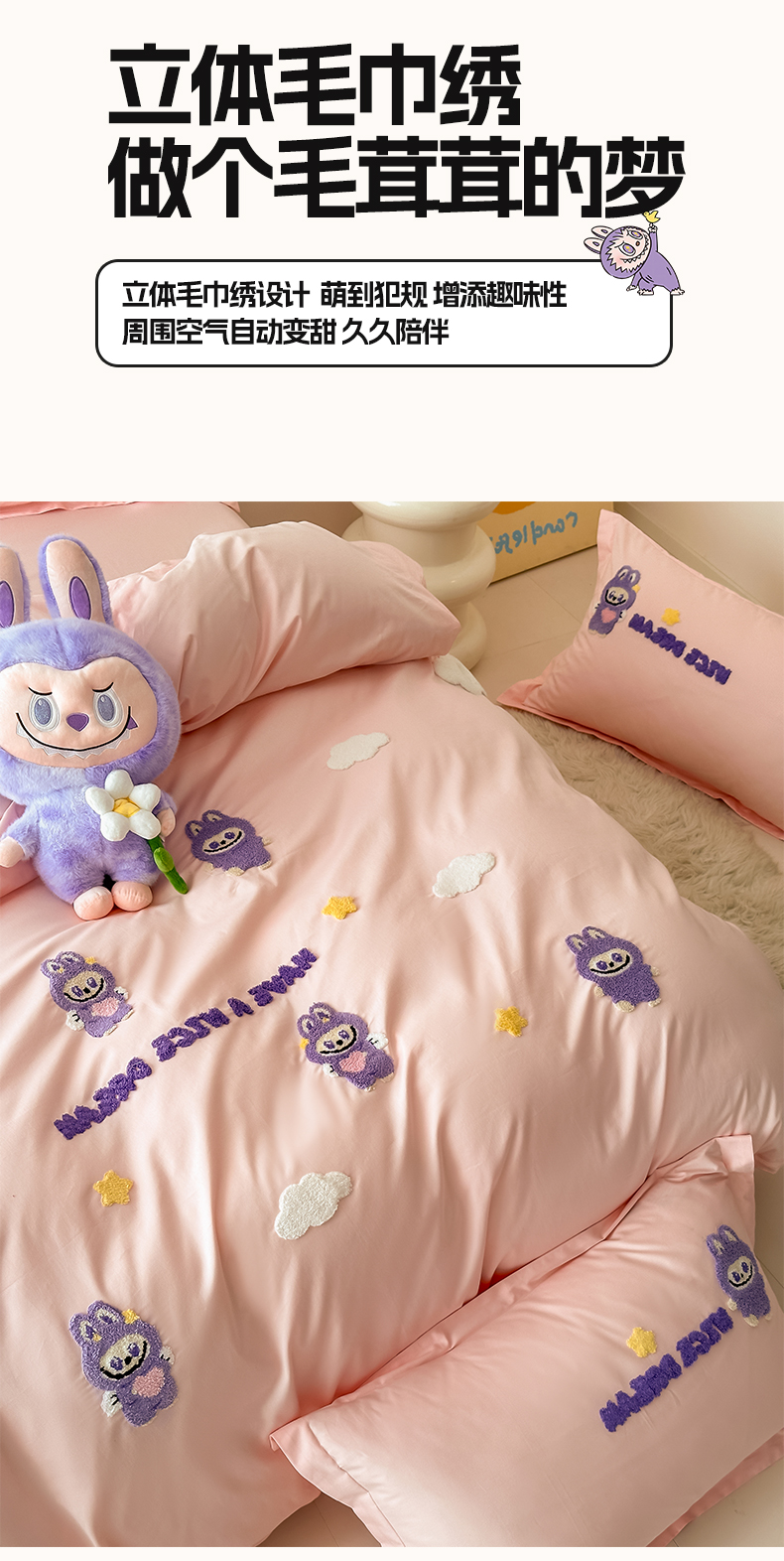 当前位置: 91家纺网 > 商品网购 > 床品套件 > 四件套 > 全棉普通四件套 > 犇牛仓储供应链 2026春夏新款A类全棉纯棉毛巾绣卡通款四件套拉布布 拉布布-粉玉
