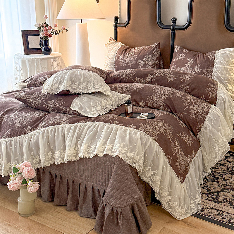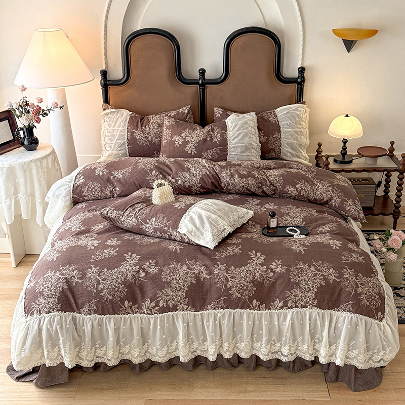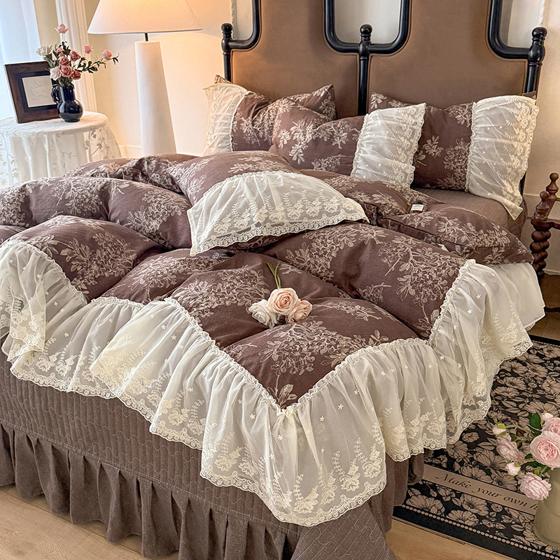 漫布云2026春夏新款法式复古双层花边大蕾丝水洗棉亚麻床盖款四件套全棉纯棉印花小碎花四件套 罗拉