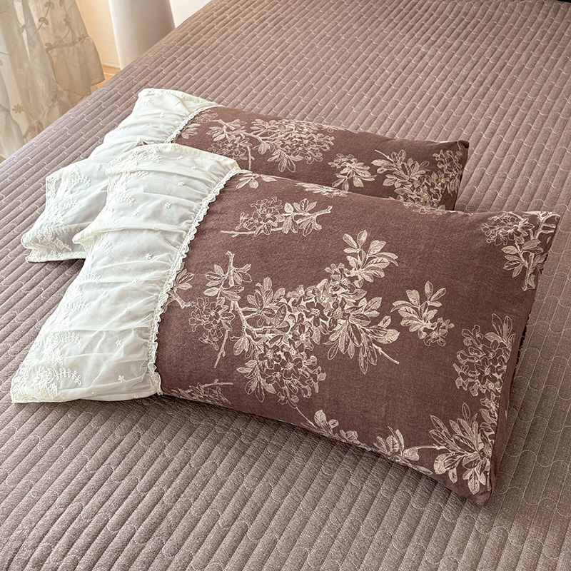商品名称:漫布云2026春夏新款法式复古双层花边大蕾丝水洗棉亚麻床盖款四件套全棉纯棉印花小碎花四件套 罗拉