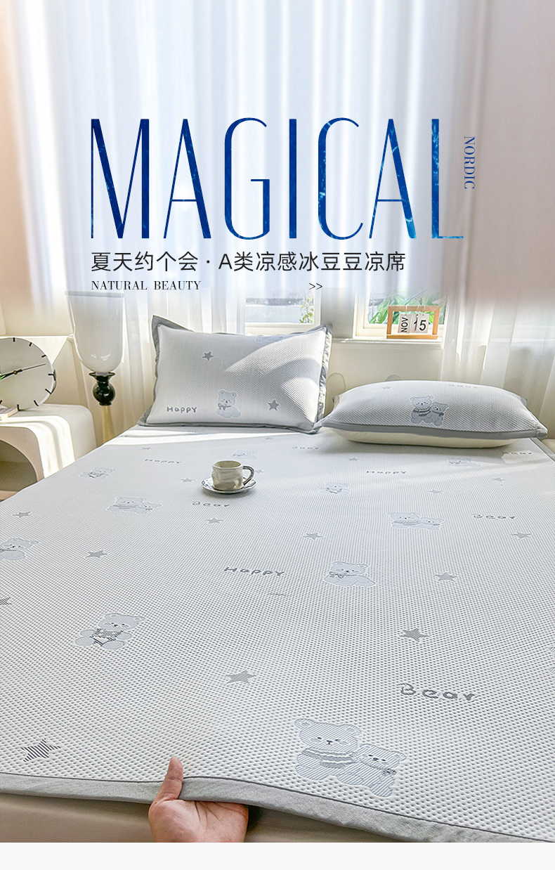 (总)柏薇 2025春夏新款5D席豆豆床笠款凉席席子,轻奢-粉,轻奢-灰,轻奢-蓝,轻奢-绿,轻奢-银灰