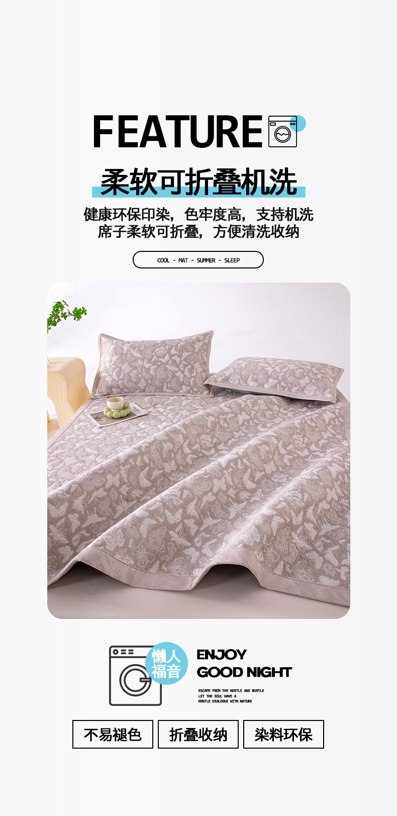 (总)卡初家居(原微来) 2026新款A类凉感冰豆豆双面提花席-漫天蝶舞,漫天蝶舞-浪漫灰,漫天蝶舞-柔和粉,漫天蝶舞-天空蓝,漫天蝶舞-香槟金,漫天蝶舞-优雅绿