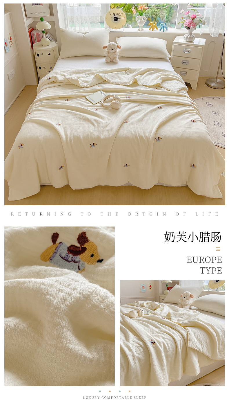 商品名称:布凡家居 2026春夏新款全棉刺绣皱皱纱夏被夏凉被空调被 奶芙小腊肠