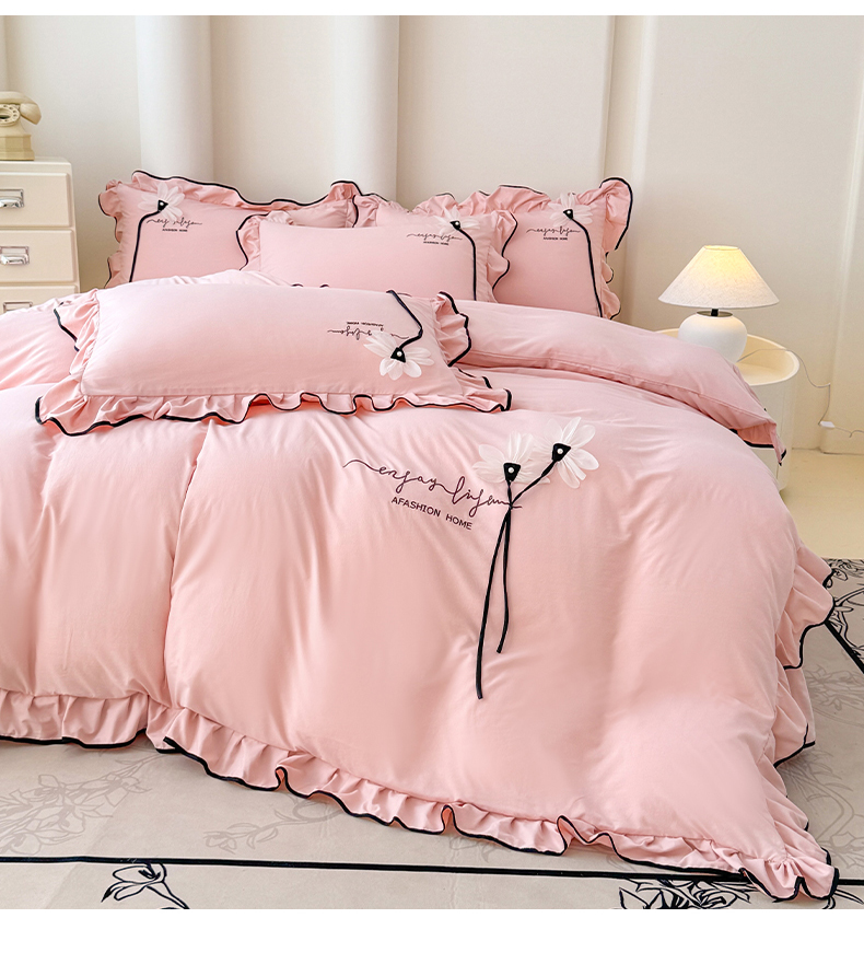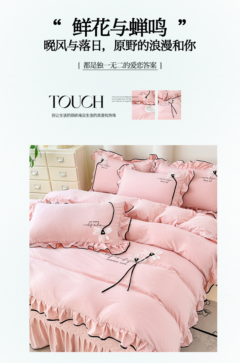 莉迪娅 2026新款A类糯小棉刺绣花边四件套-雅韵系列 雅韵-蓝