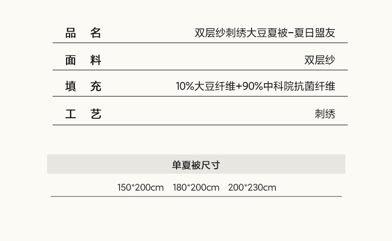 商品名称:一加一 2026新款双层纱刺绣大豆夏被夏凉被空调被-夏日盟友 夏日盟友-马上睡