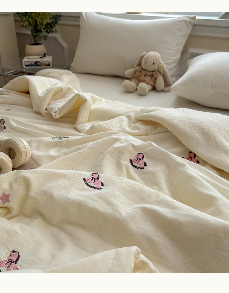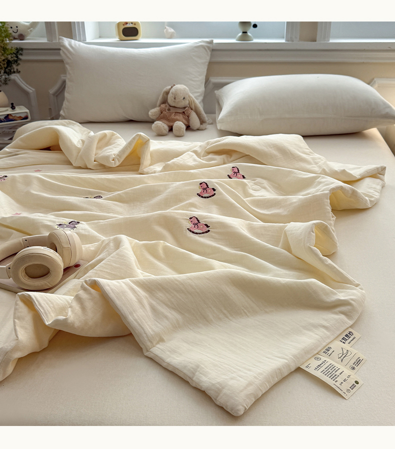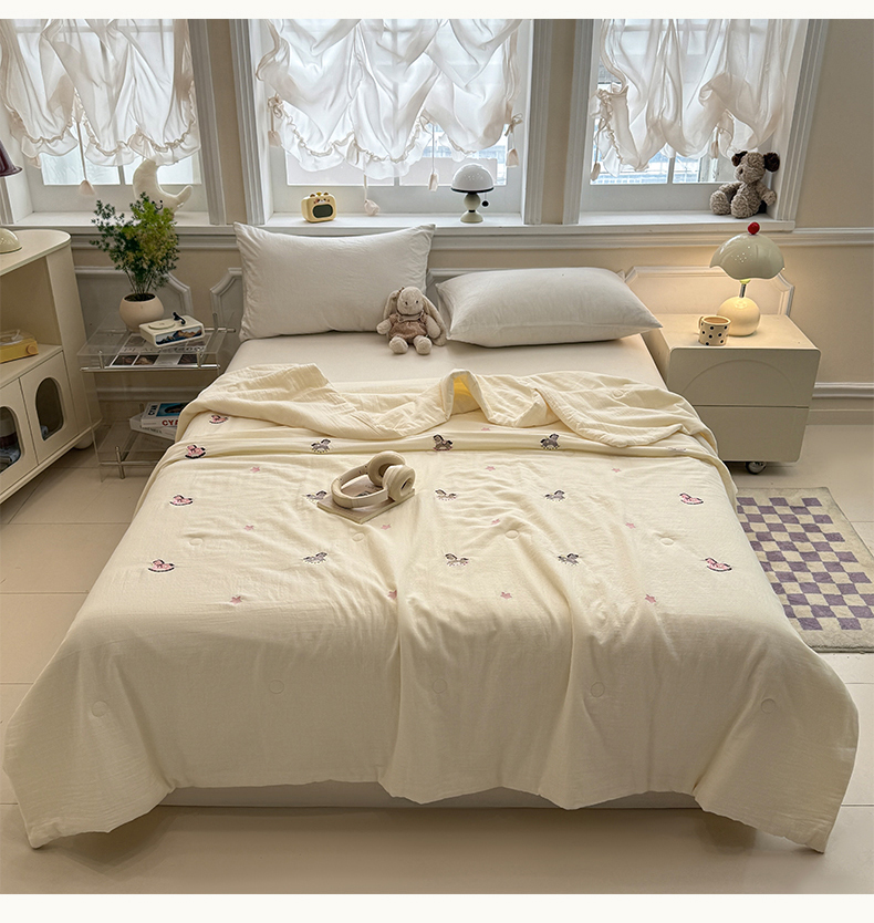 一加一 2026新款双层纱刺绣大豆夏被夏凉被空调被-夏日盟友 夏日盟友-马上睡