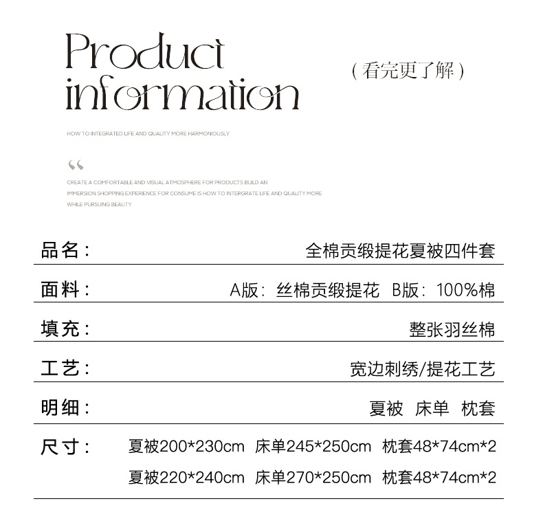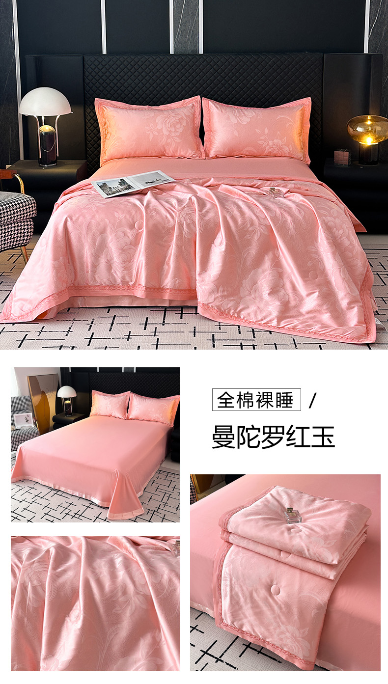 商品名称:莉迪娅 2026新款全棉纯棉贡缎提花夏被夏凉被空调被四件套 曼陀罗香槟
