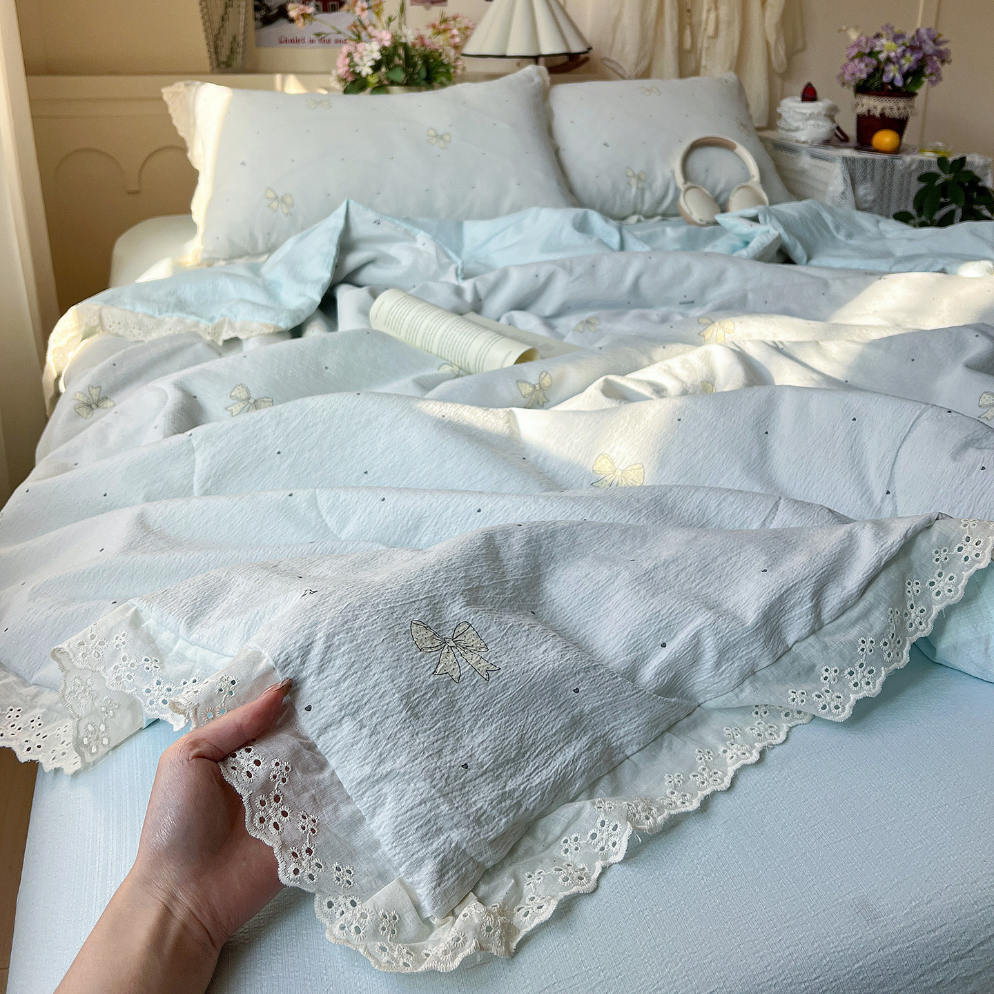 当前位置: 91家纺网 > 商品网购 > 床品套件 > 四件套 > 夏被四件套 > 瑞禾家纺 2026新款彩色花边木棉皱皱纱夏被四件套 紫烟