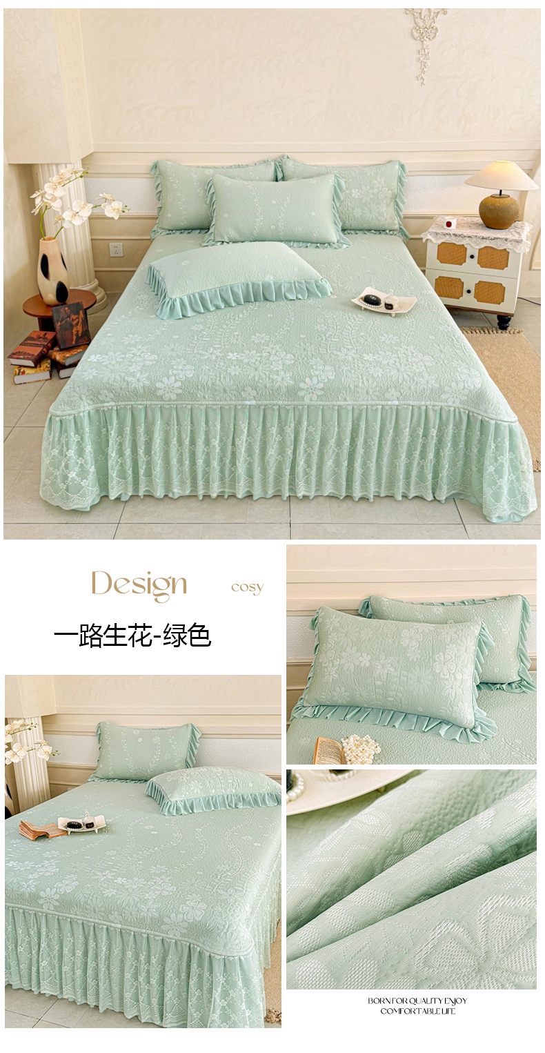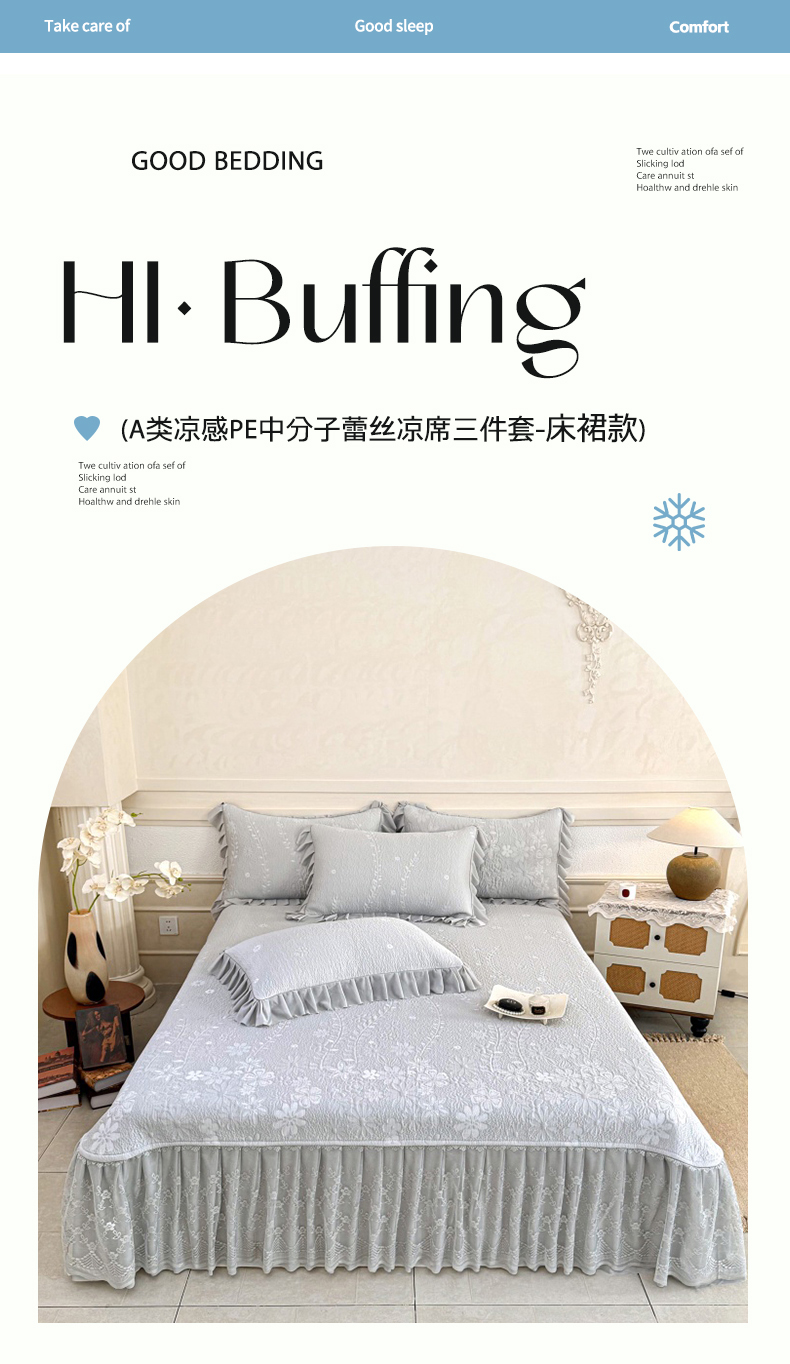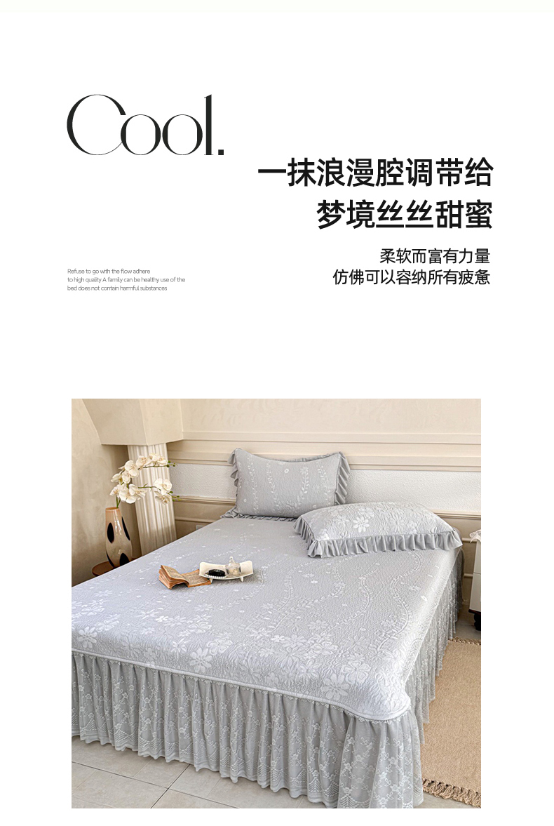 (总)金绣美居 2026新款PE高分子凉感席冰感床裙款三件套-安然影 (控价不低于199元),安然影-豆沙粉,安然影-蓝色,安然影-清水绿,安然影-紫色