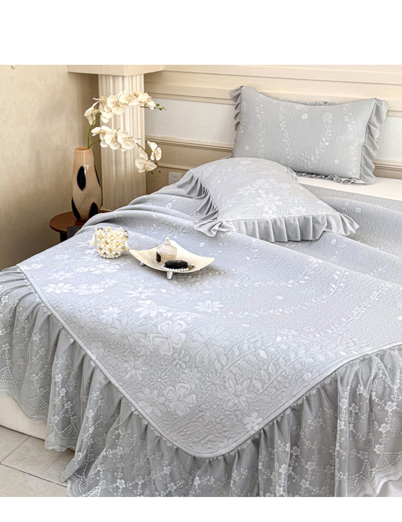 金绣美居 2026新款PE高分子凉感席聚乙烯冰感床裙款凉席三件套-一路生花 一路生花-灰色