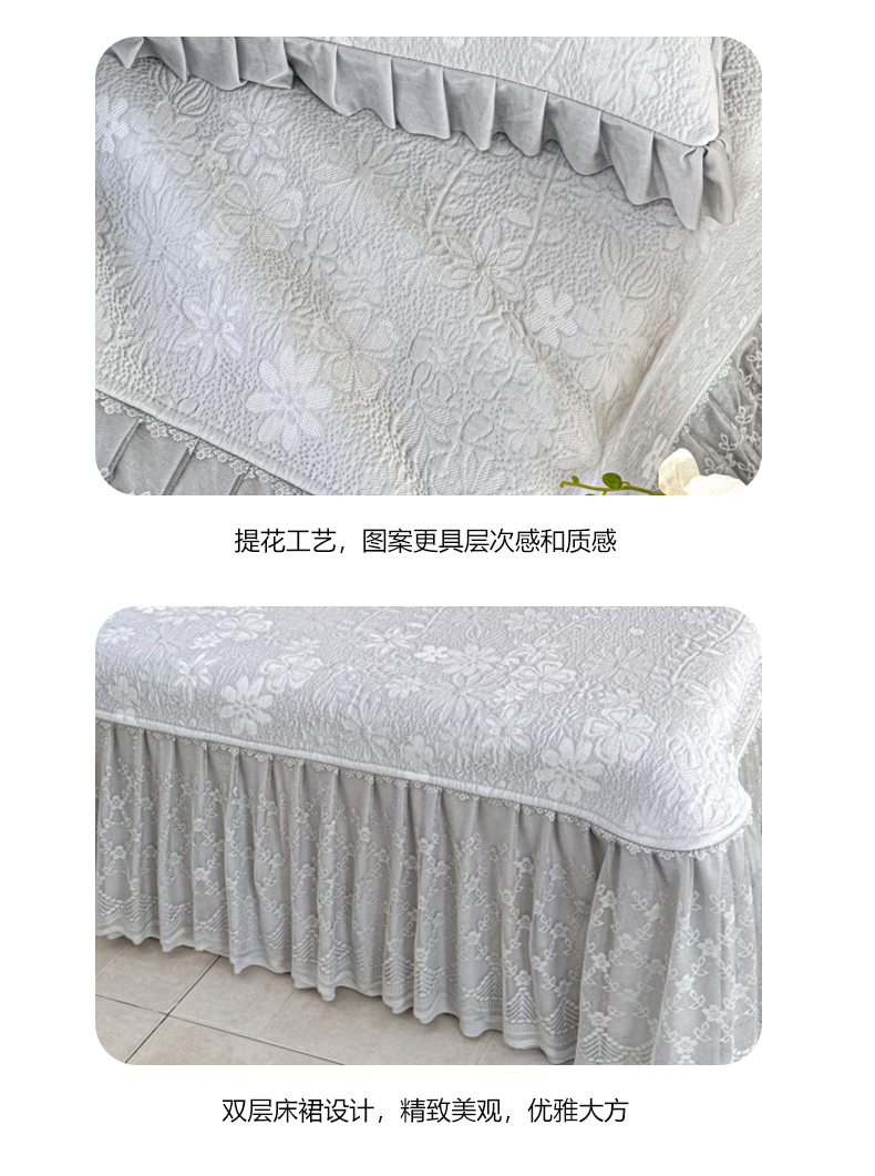 商品名称:金绣美居 2026新款PE高分子凉感席聚乙烯冰感床裙款凉席三件套-一路生花 一路生花-灰色