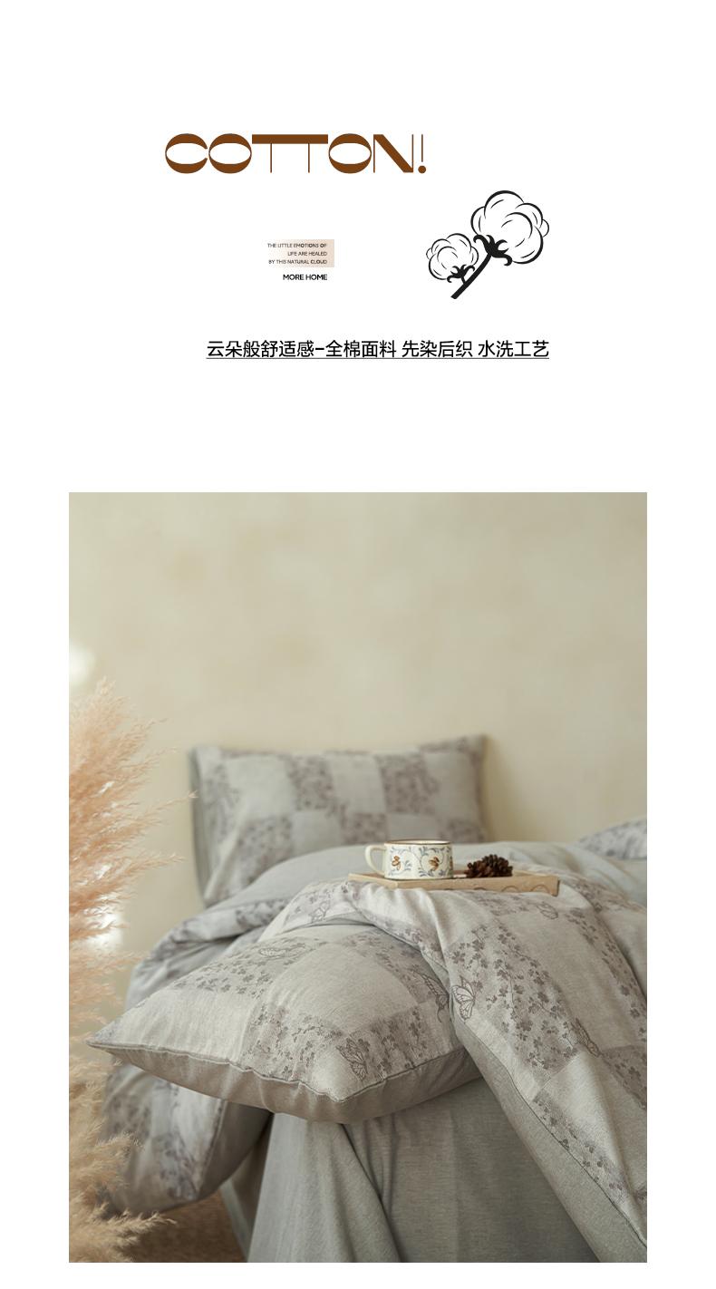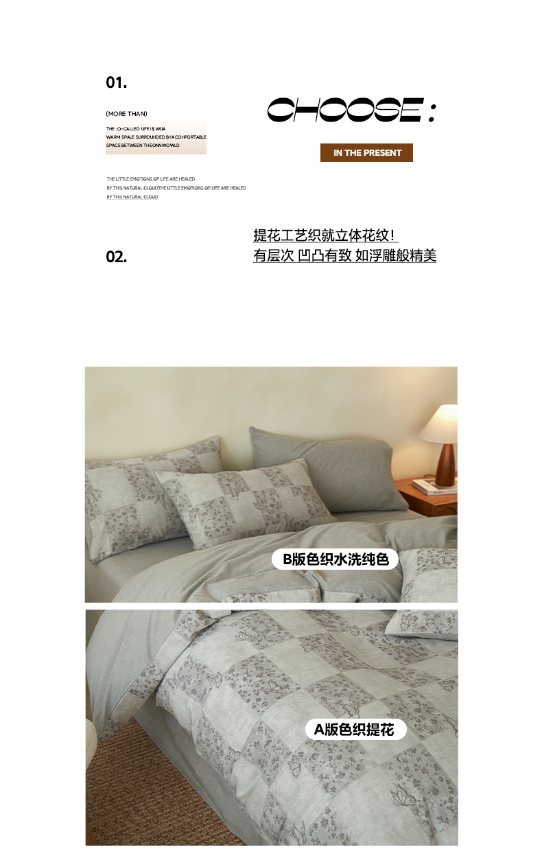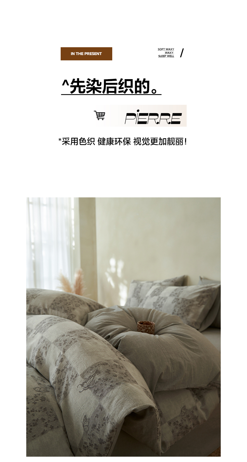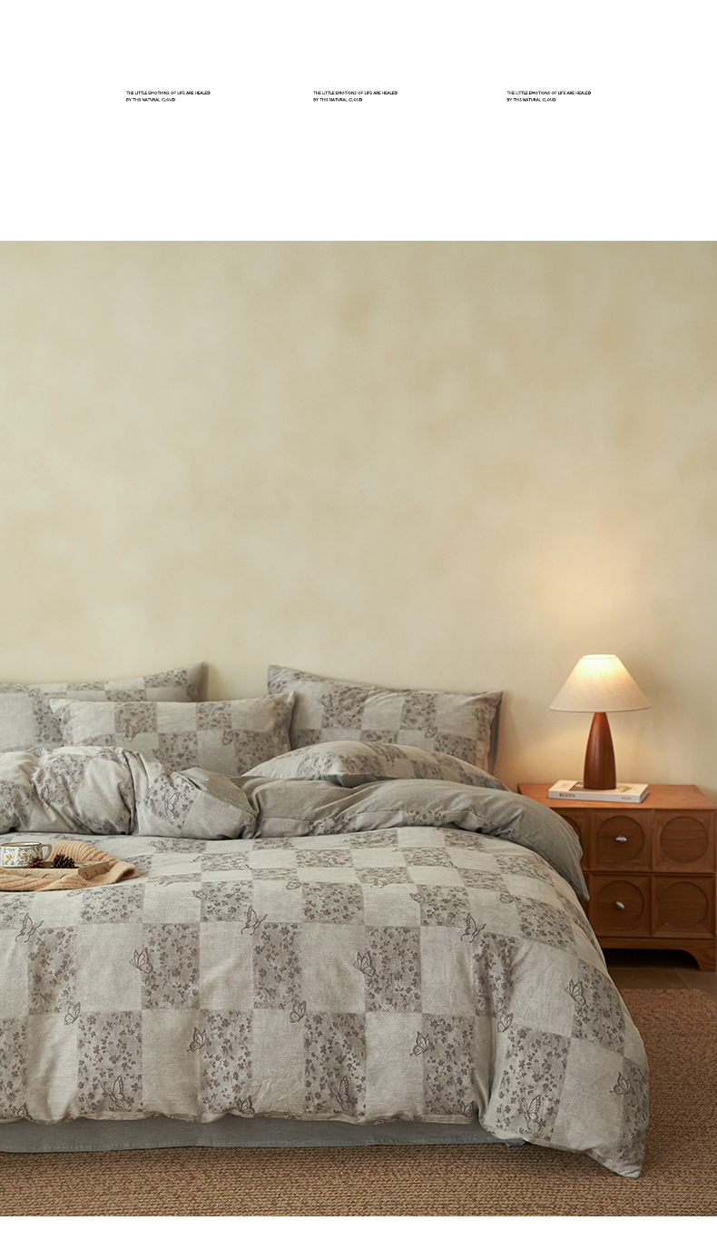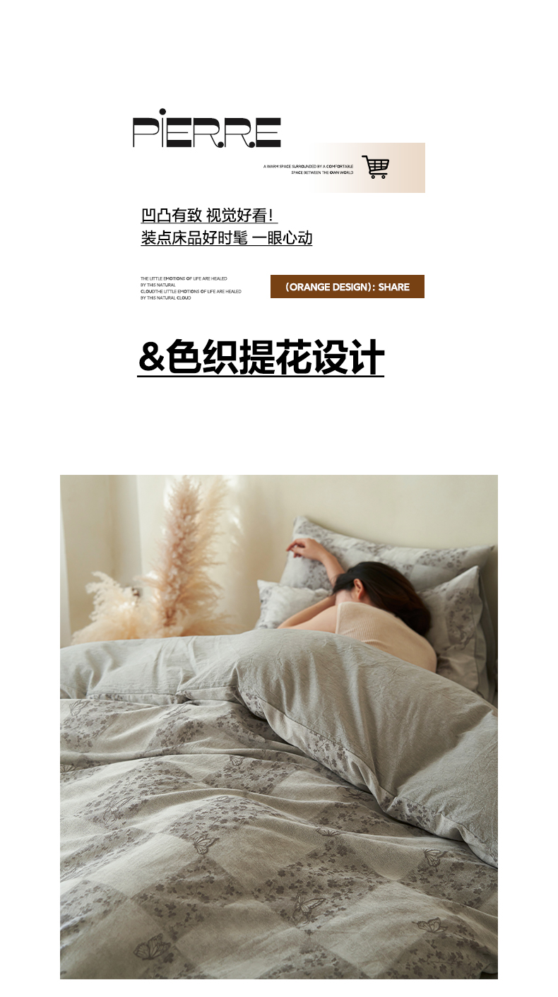 当前位置: 91家纺网 > 商品网购 > 床品套件 > 四件套 > 全棉普通四件套 > 如一 2026春夏新款色织提花全棉纯棉水洗棉四件套 蝶漫-灰