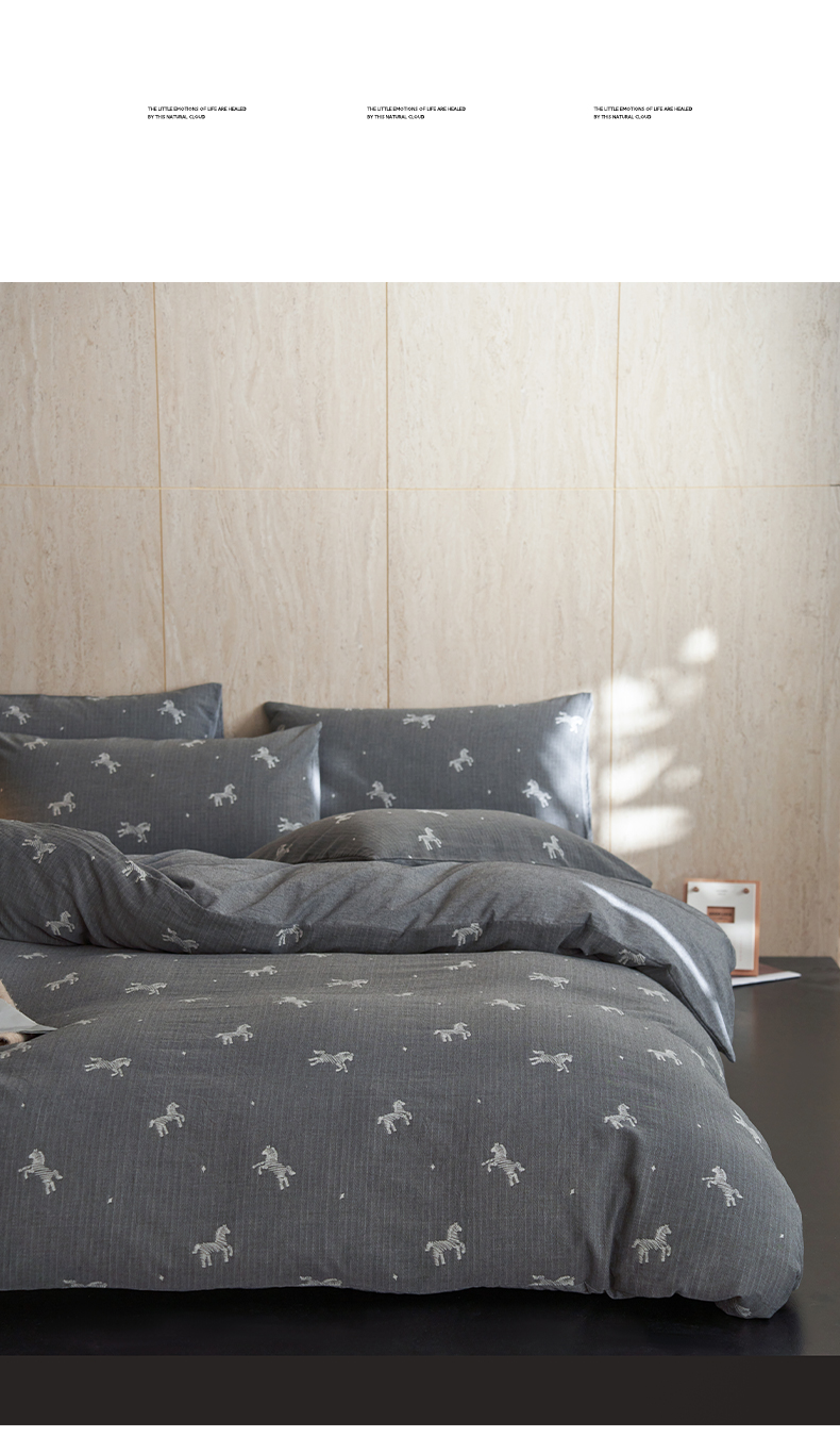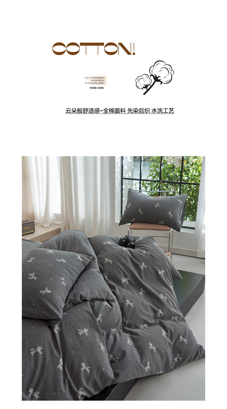 当前位置: 91家纺网 > 商品网购 > 床品套件 > 四件套 > 全棉普通四件套 > 如一 2026春夏新款色织提花全棉纯棉水洗棉四件套 骏影-黑