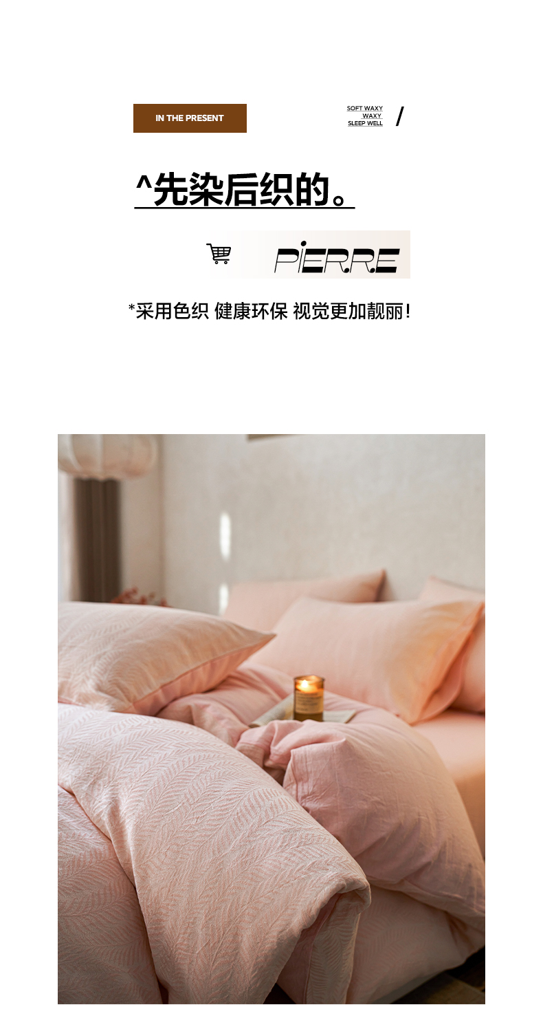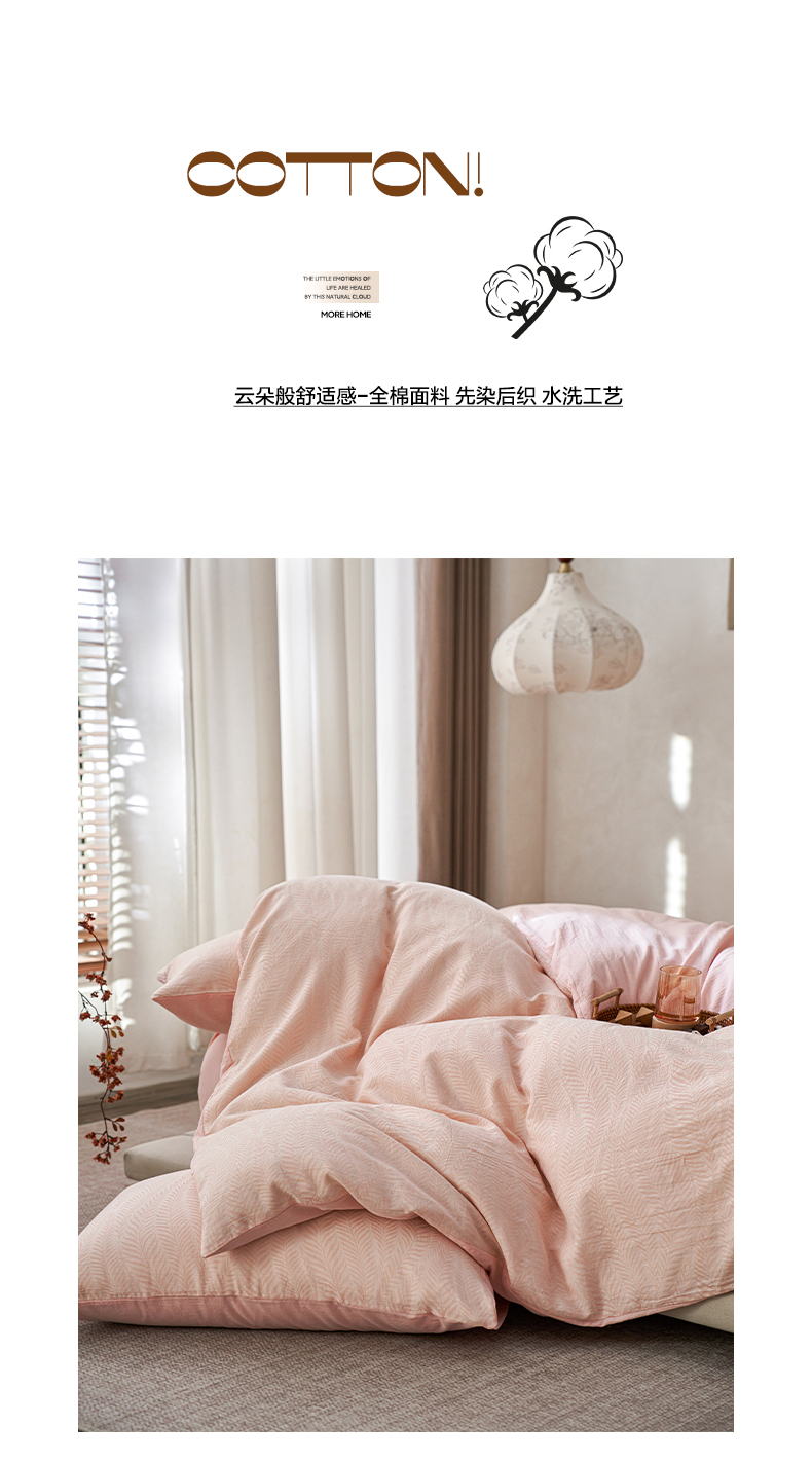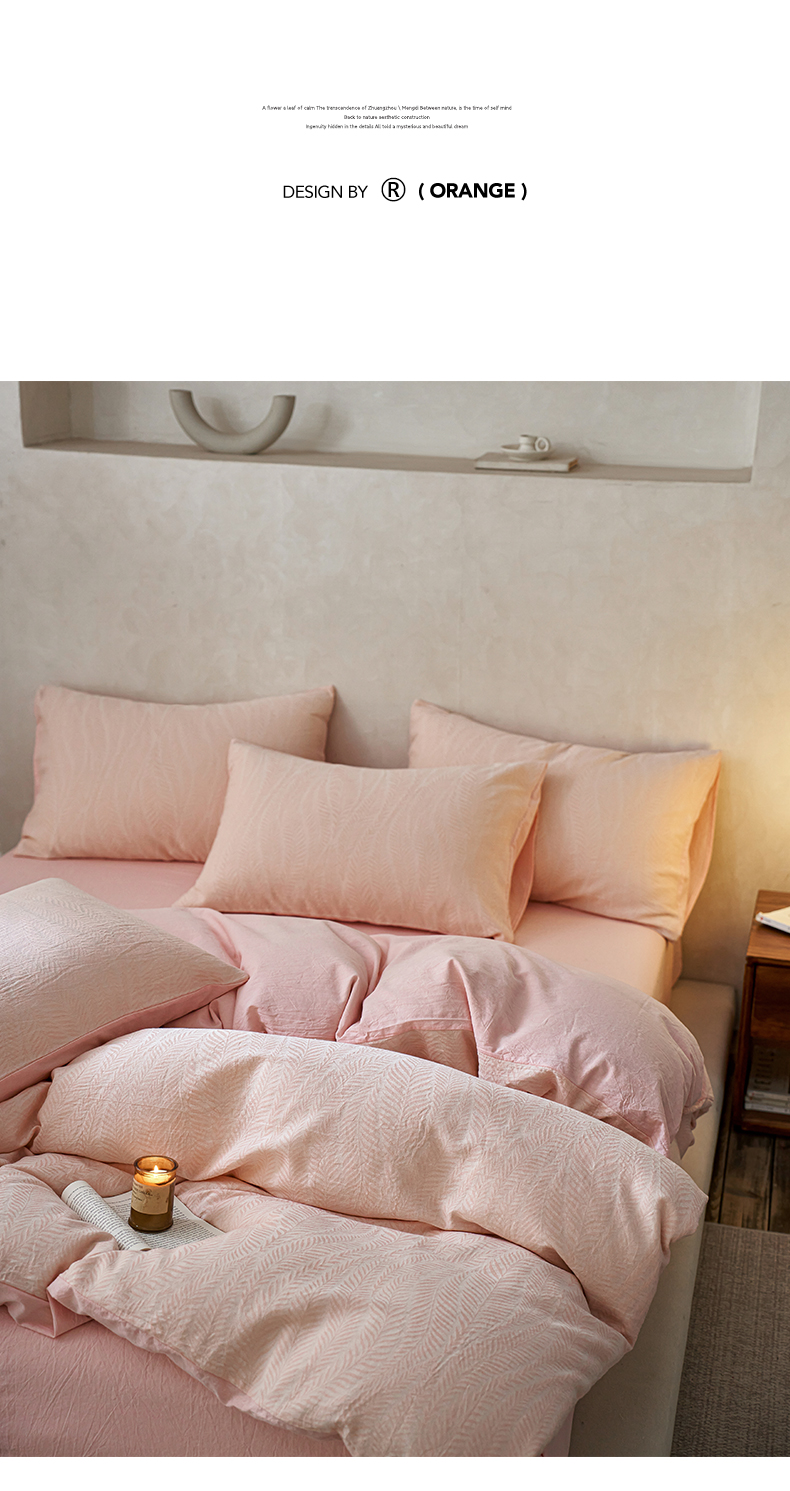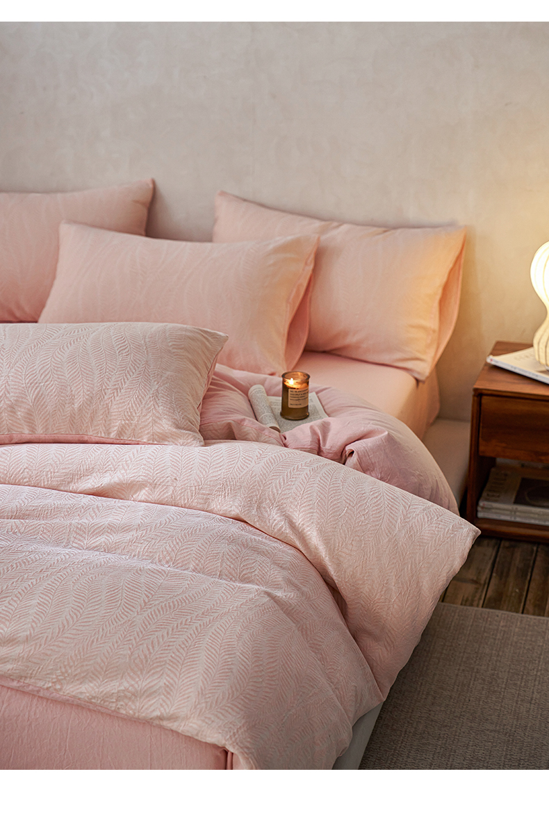 当前位置: 91家纺网 > 商品网购 > 床品套件 > 四件套 > 全棉普通四件套 > 如一 2026春夏新款色织提花全棉纯棉水洗棉四件套 叶笙-粉