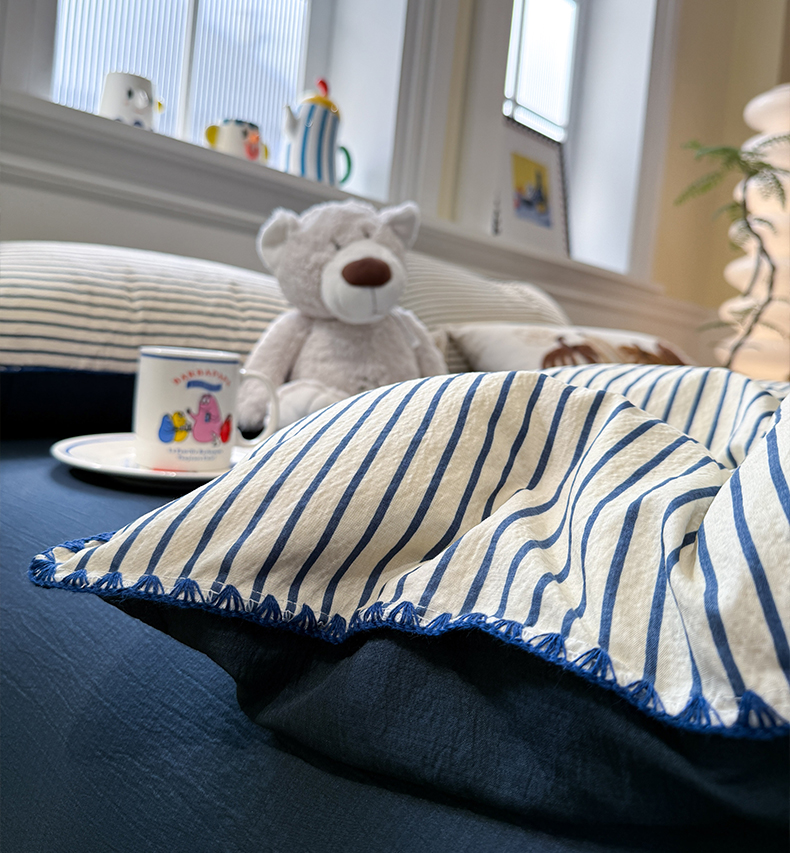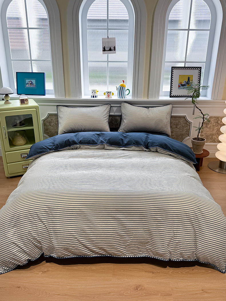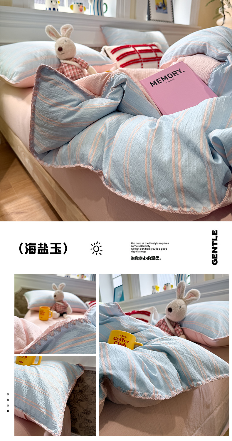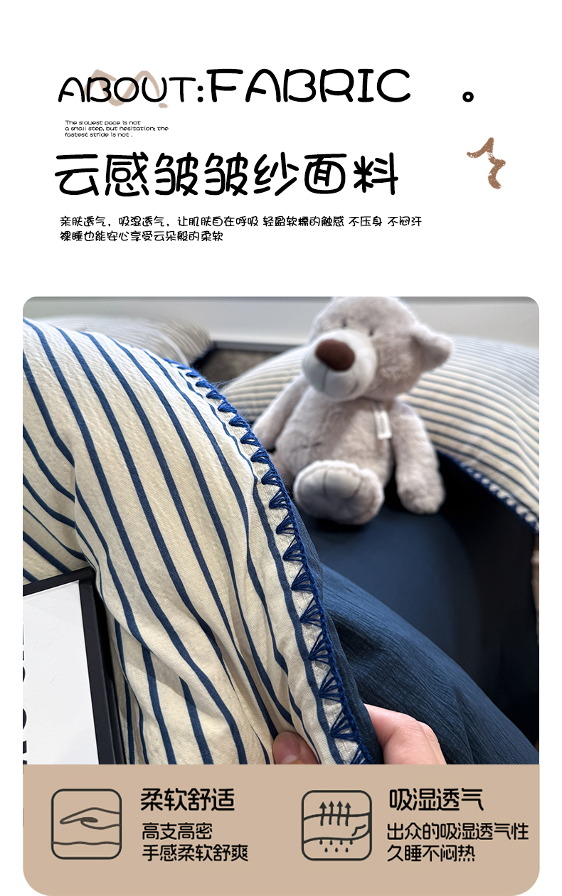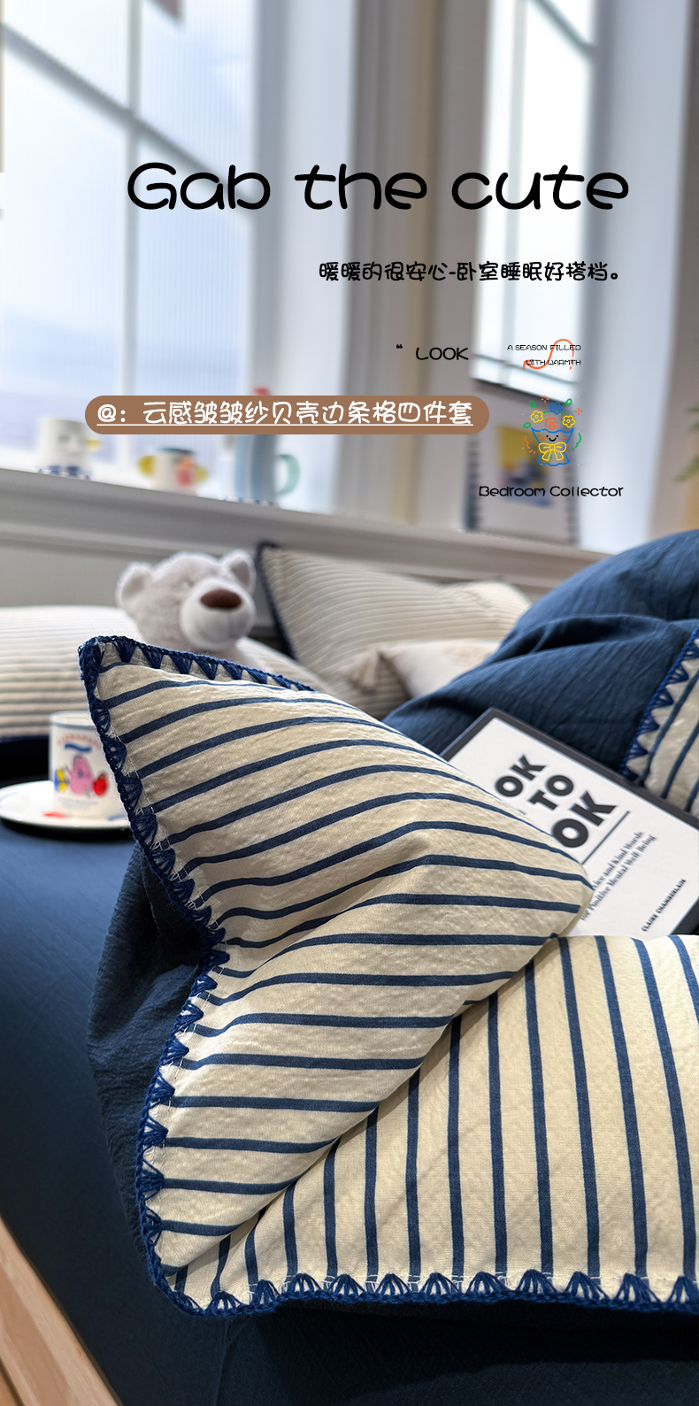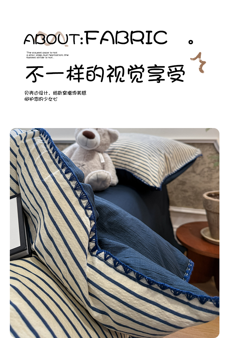 当前位置: 91家纺网 > 商品网购 > 床品套件 > 四件套 > 化纤普通四件套 > 水墨江南 2026新款条格系列贝壳边三角针四件套 海岸蓝