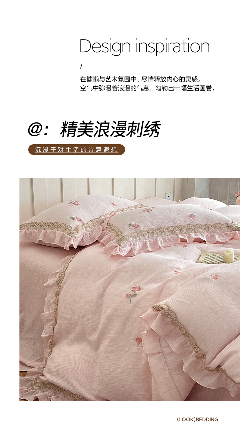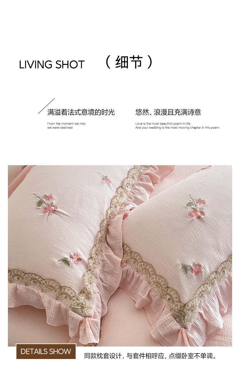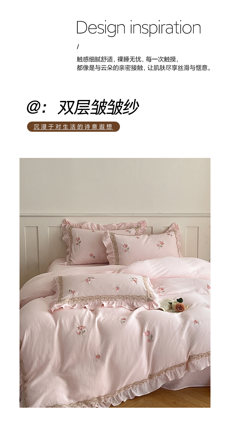 当前位置: 91家纺网 > 商品网购 > 床品套件 > 四件套 > 其它四件套 > 帝王家纺 2026爆款法式小清新双层皱皱纱四件套四季款-花漾 花漾-雅粉