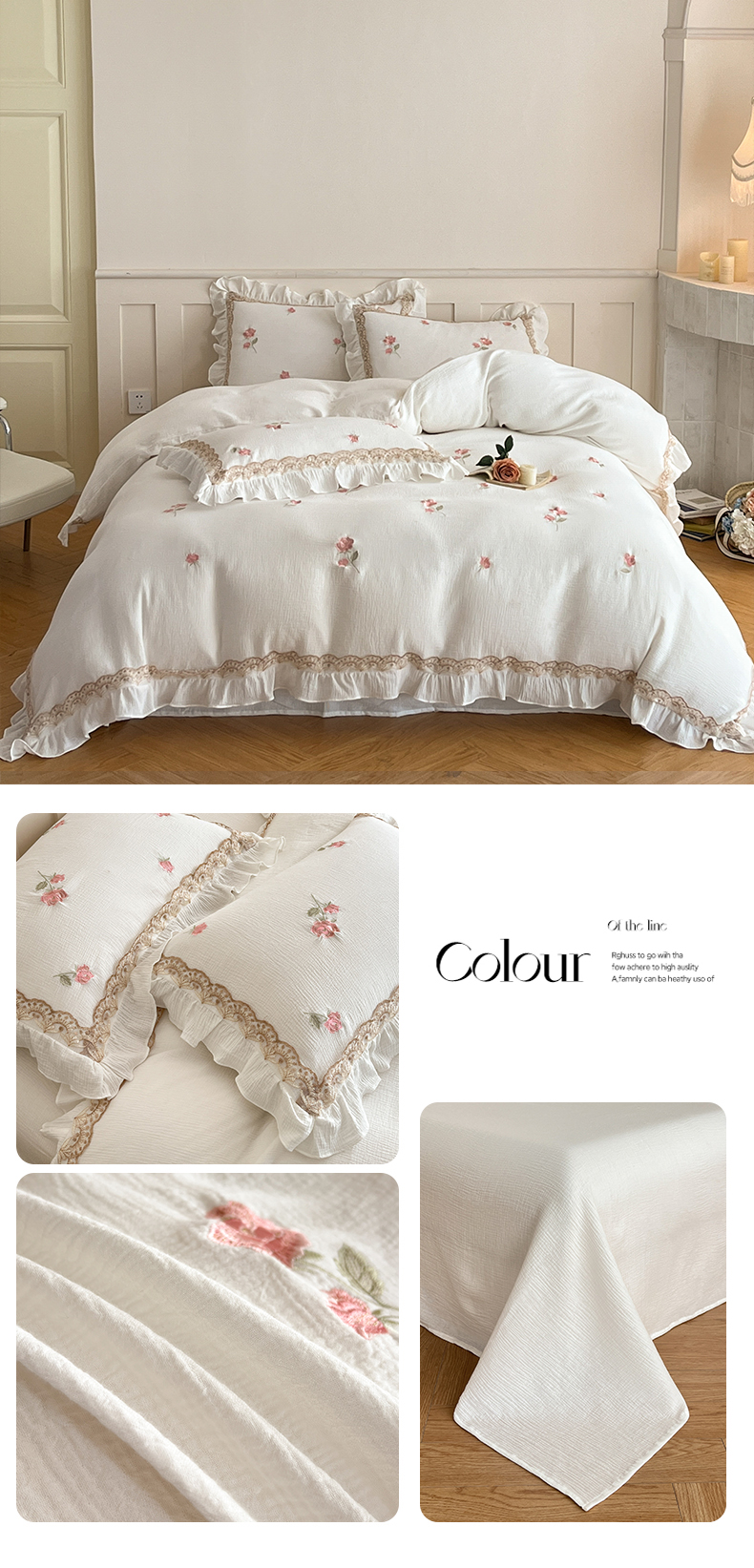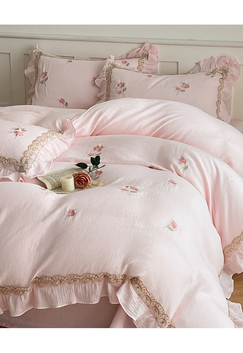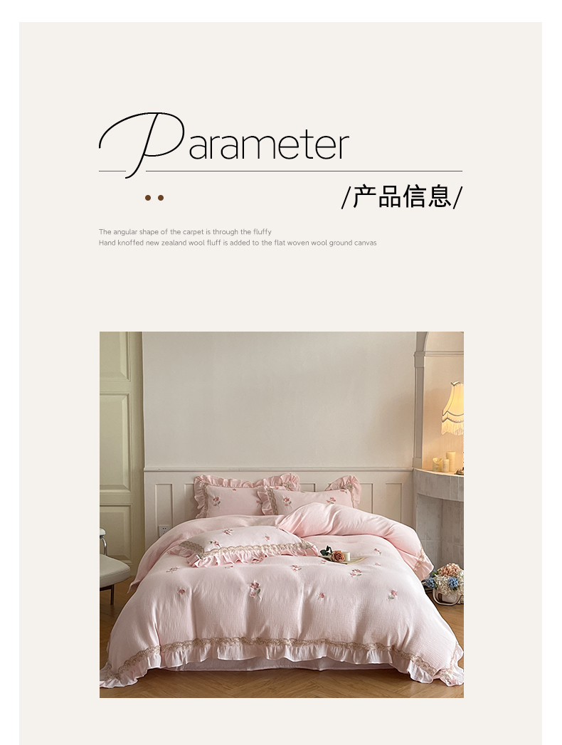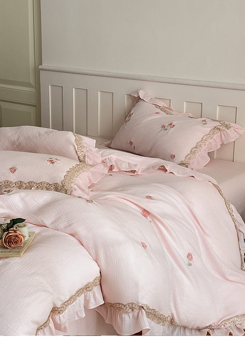 当前位置: 91家纺网 > 商品网购 > 床品套件 > 四件套 > 其它四件套 > 帝王家纺 2026爆款法式小清新双层皱皱纱四件套四季款-花漾 花漾-雅粉