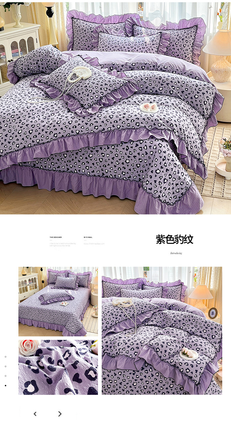 妮恒美 2026新款法式床盖款四件套 紫色豹纹