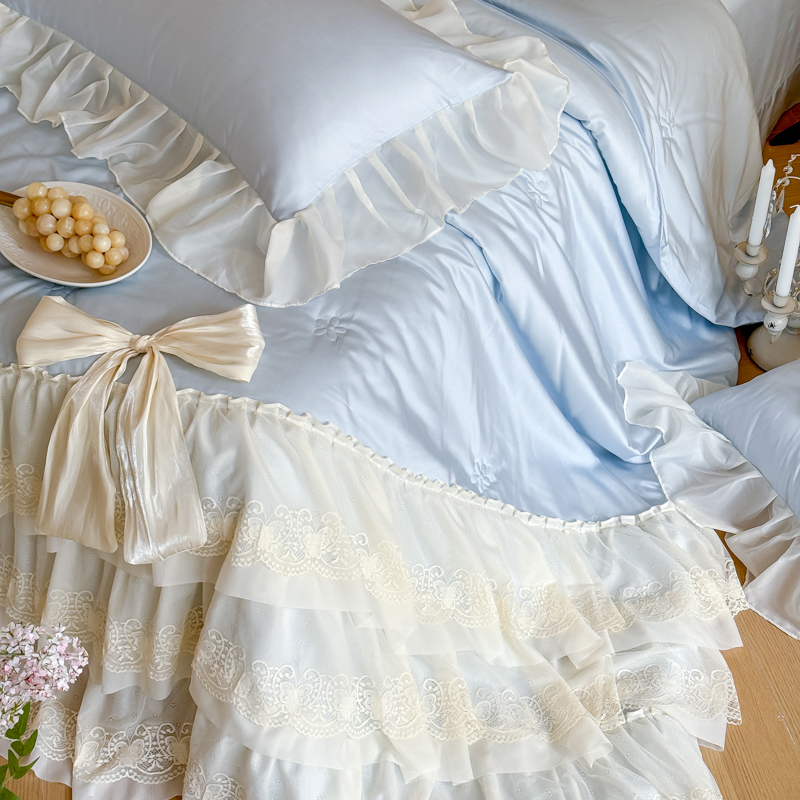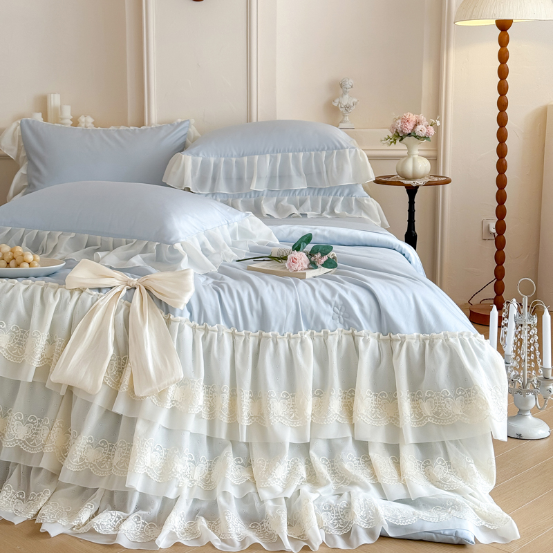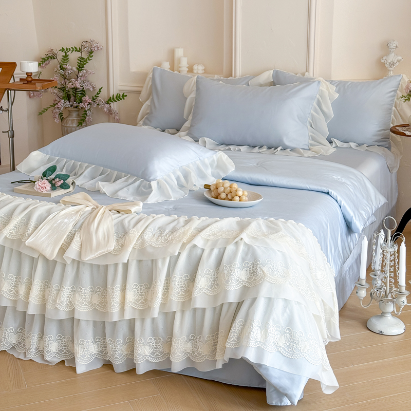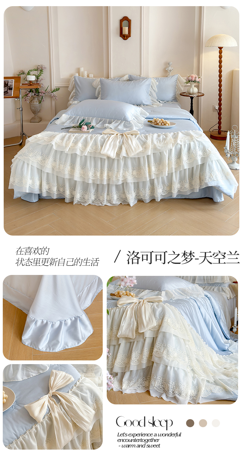 商品名称:爱家(原缔乐家纺) 2026新款轻奢法式天丝夏被四件套 洛可可之梦-天空兰