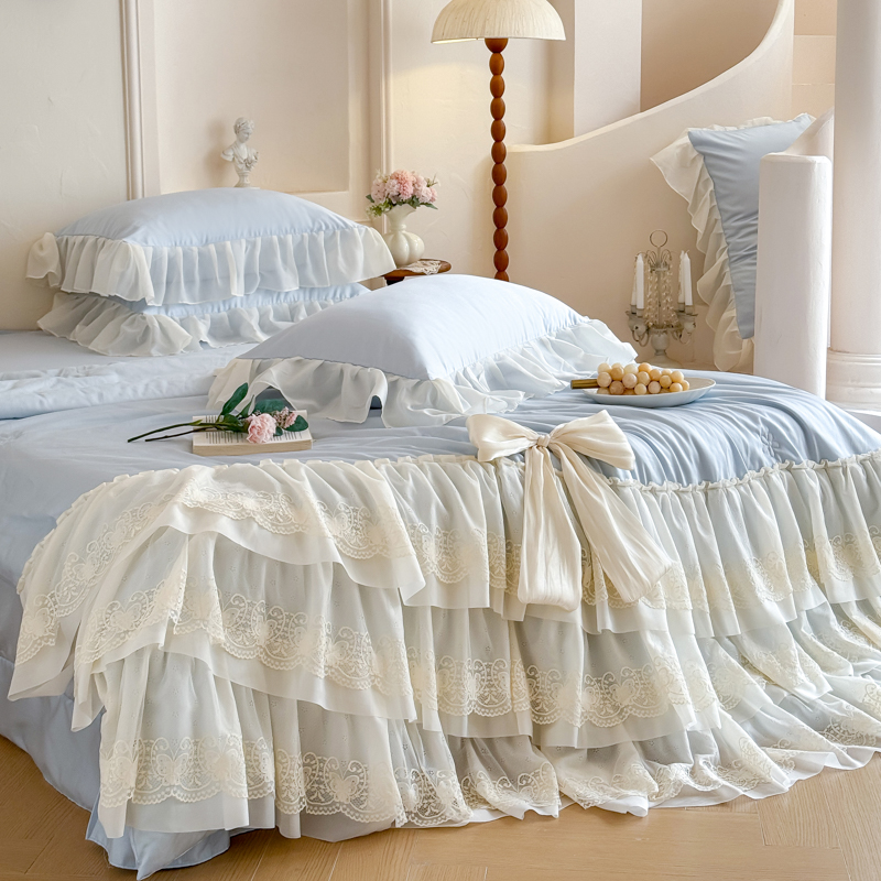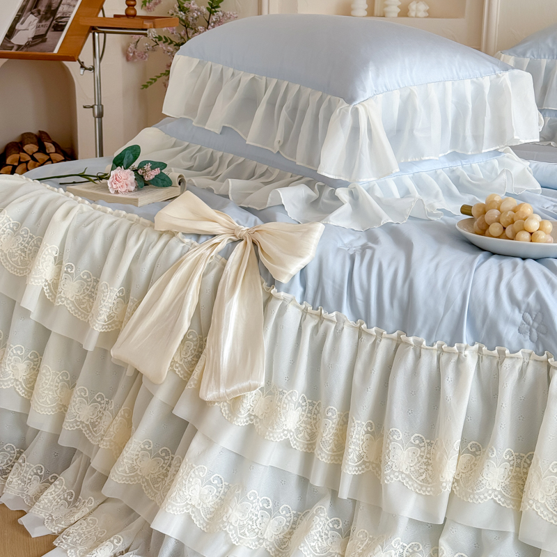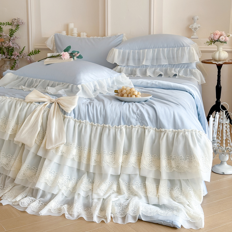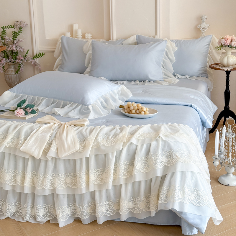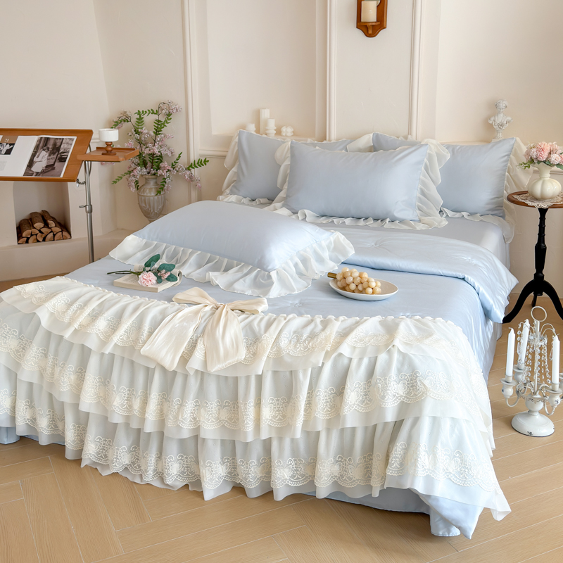 商品名称:爱家(原缔乐家纺) 2026新款轻奢法式天丝夏被四件套 洛可可之梦-天空兰