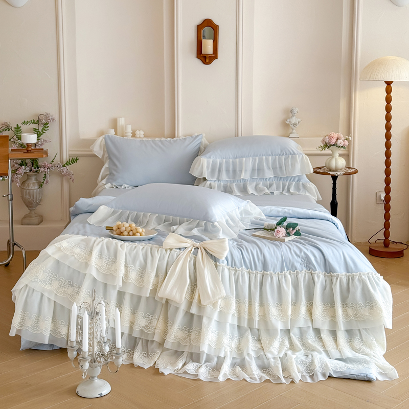 爱家(原缔乐家纺) 2026新款轻奢法式天丝夏被四件套 洛可可之梦-天空兰