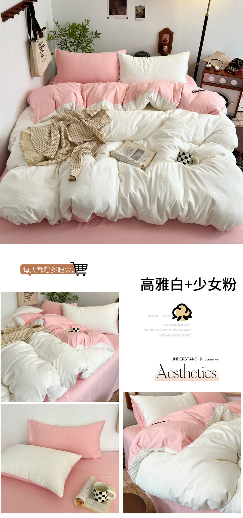 当前位置: 91家纺网 > 商品网购 > 床品套件 > 四件套 > 化纤普通四件套 > 梦嘉居 2026新款亲肤纯色AB版水洗皱皱棉四件套学生宿舍床单床笠三件套 高雅白+少女粉