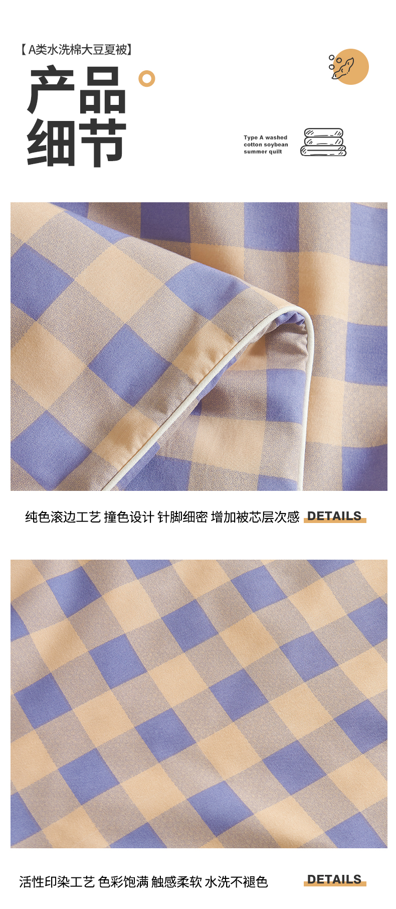 商品名称:景眠 2026新款水洗棉格子夏被 桔紫中格
