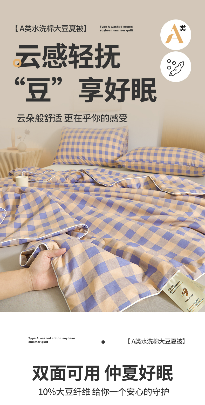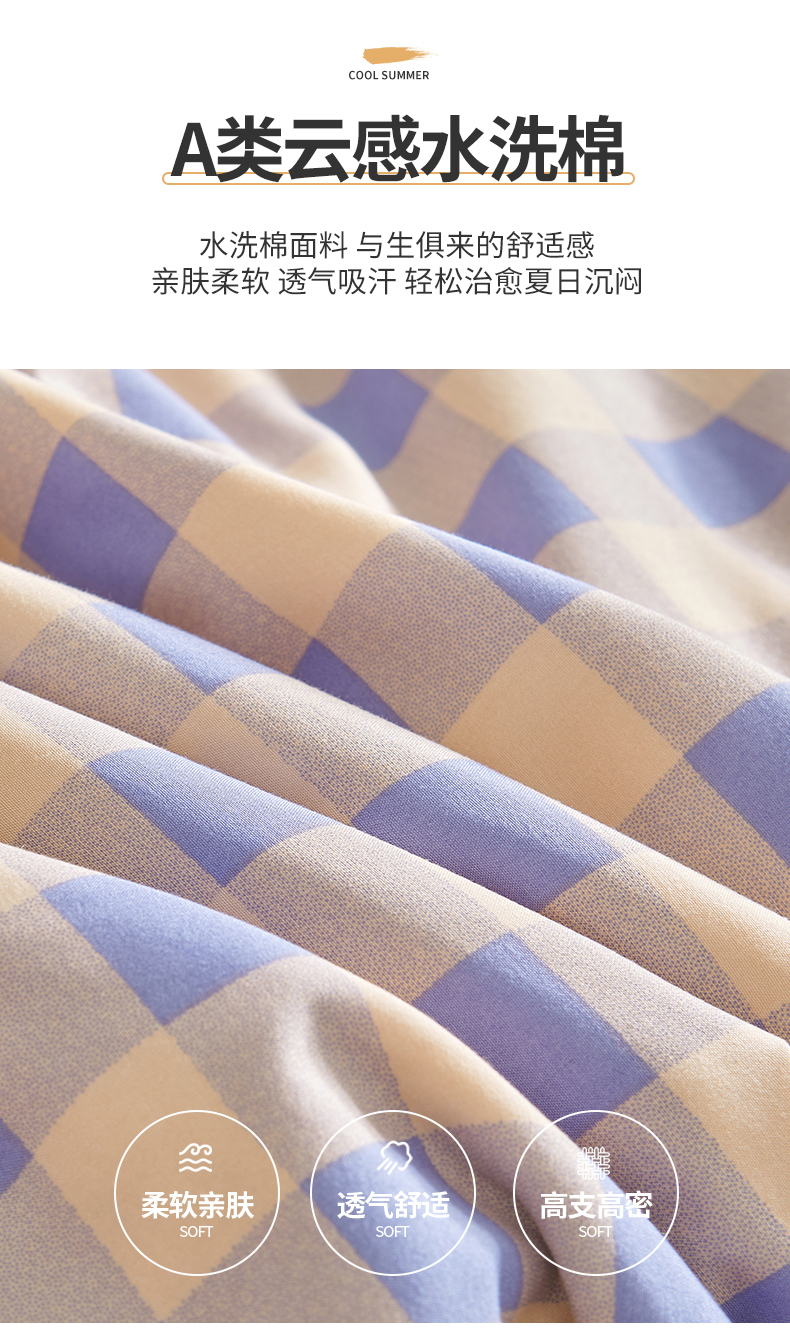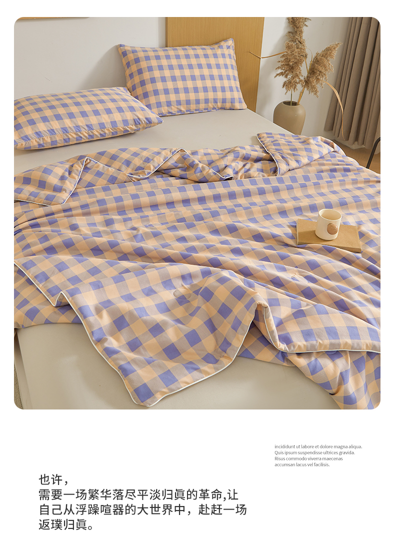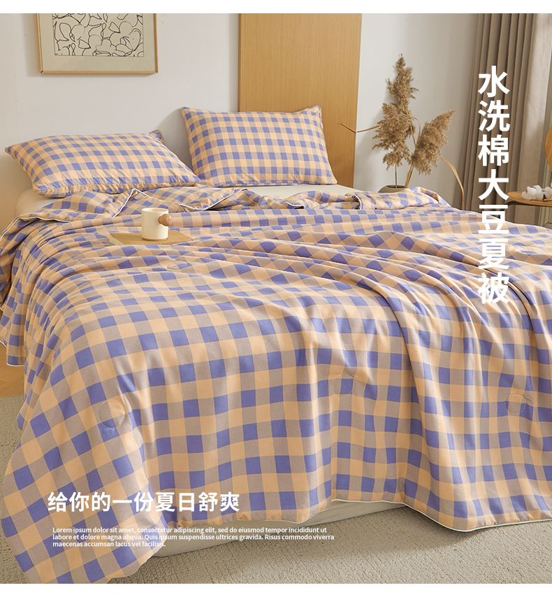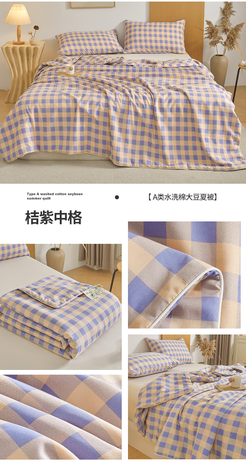 (总)景眠 2026新款水洗棉格子夏被,黄蓝中格,黄紫中格,桔紫中格,绿蓝中格,绿紫中格,沐雅格 粉,沐雅格 蓝