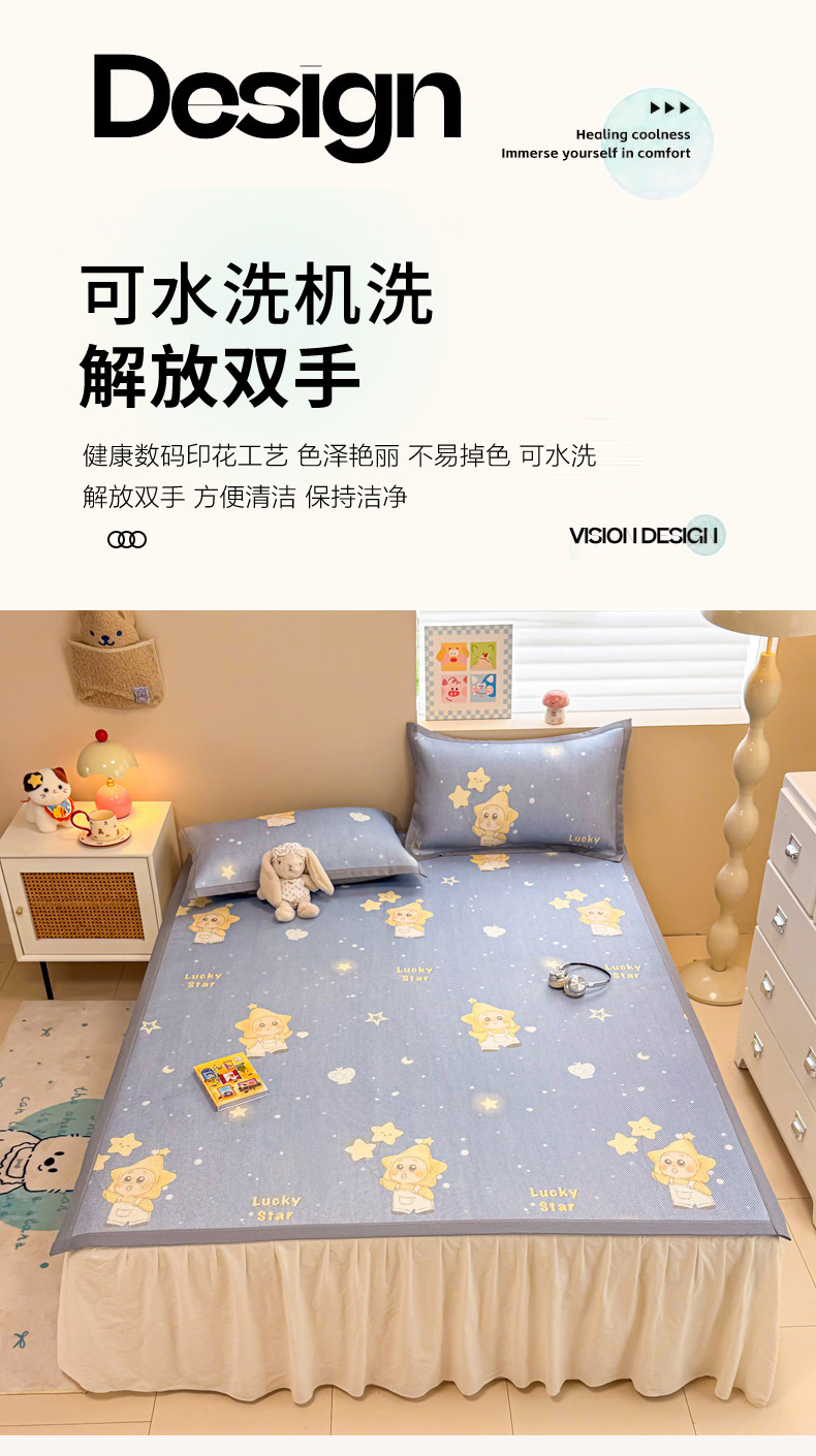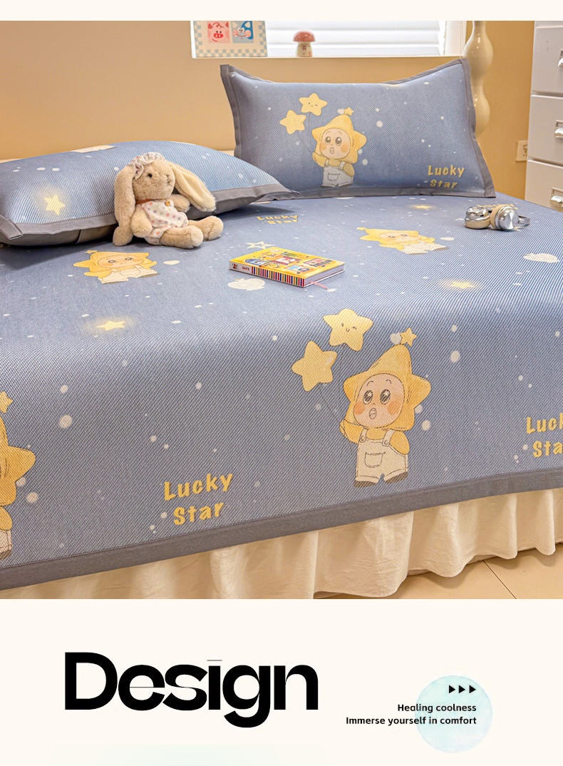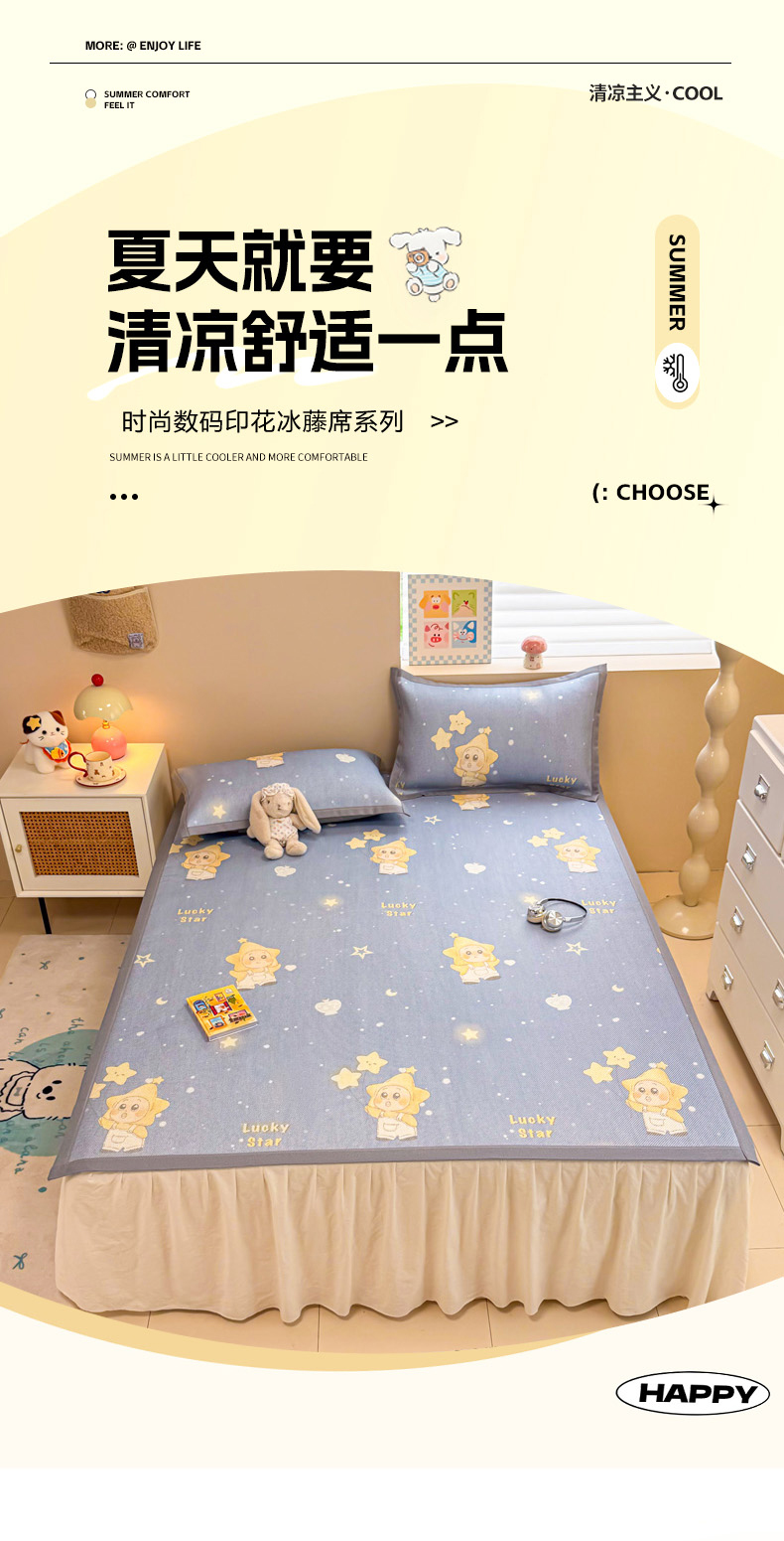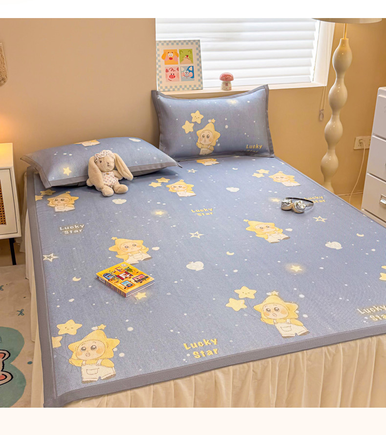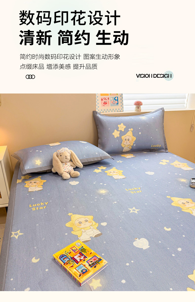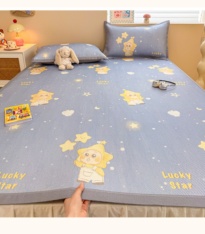 沐慕 2026新款高克重600D冰丝印花冰藤席 冰藤-星愿小福星
