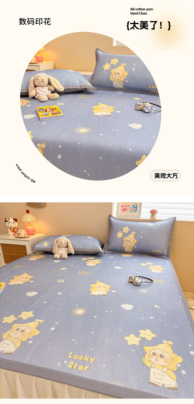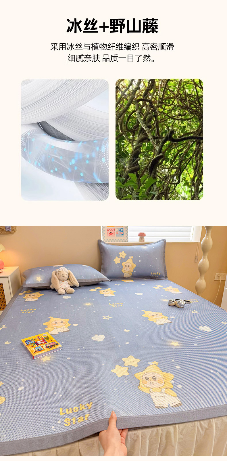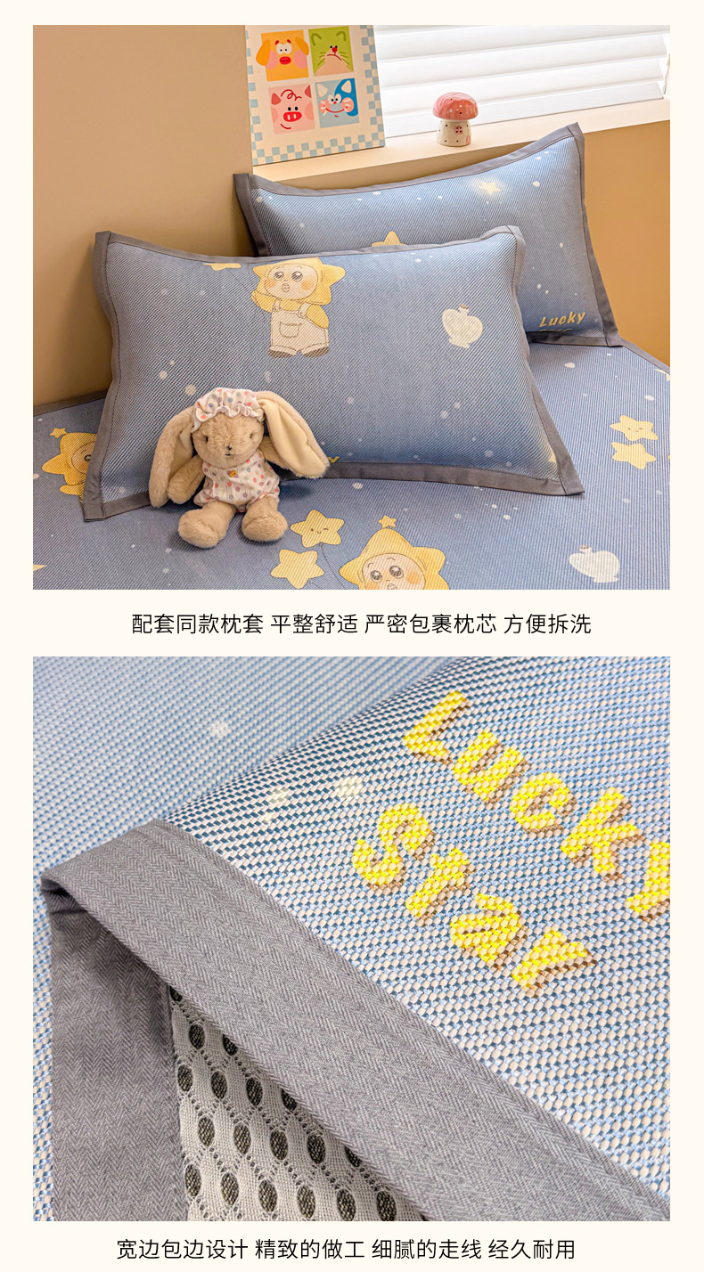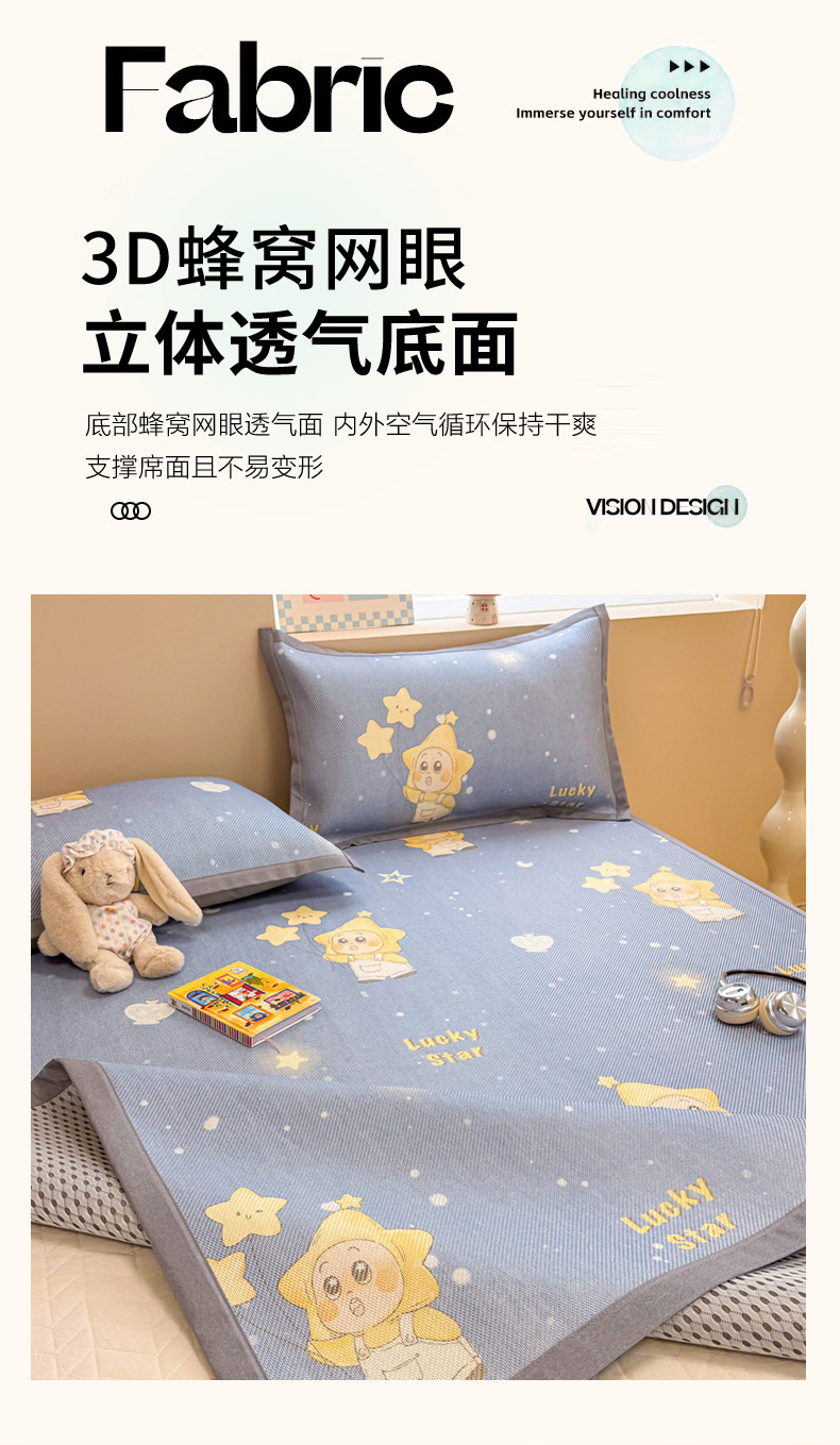 沐慕 2026新款高克重600D冰丝印花冰藤席 冰藤-星愿小福星