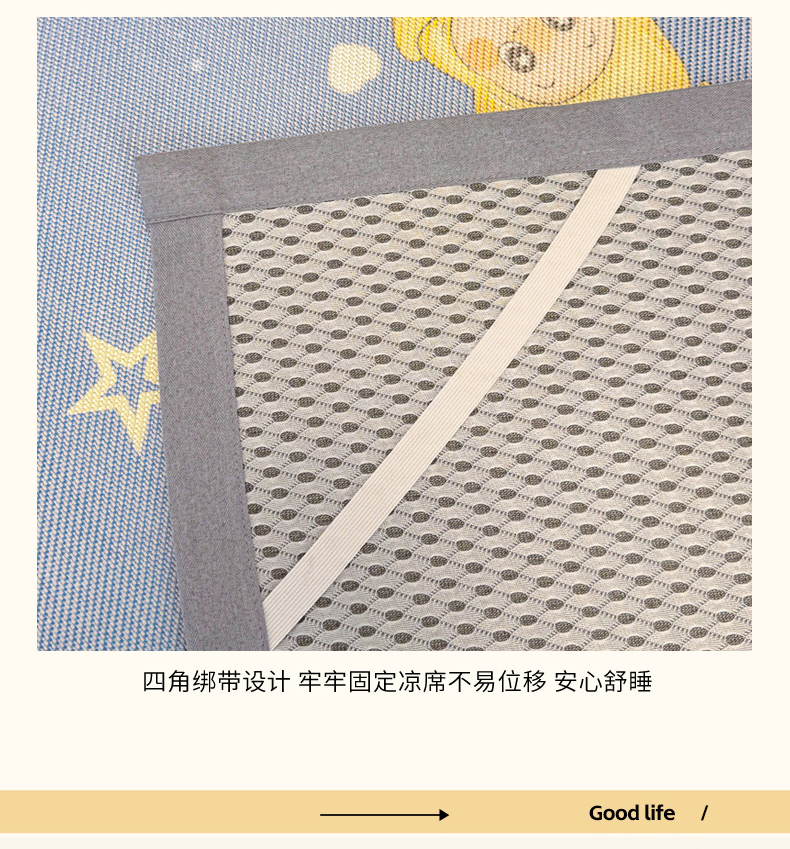 商品名称:沐慕 2026新款高克重600D冰丝印花冰藤席 冰藤-星愿小福星