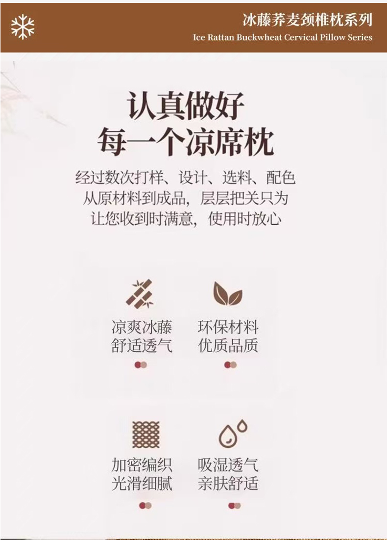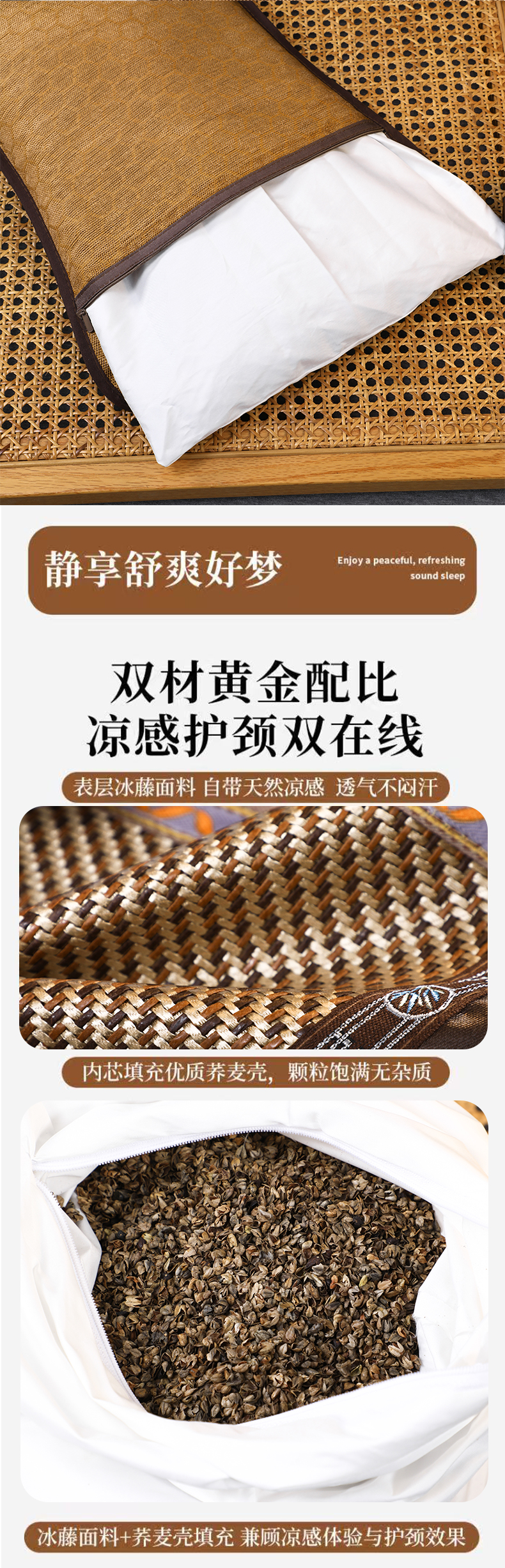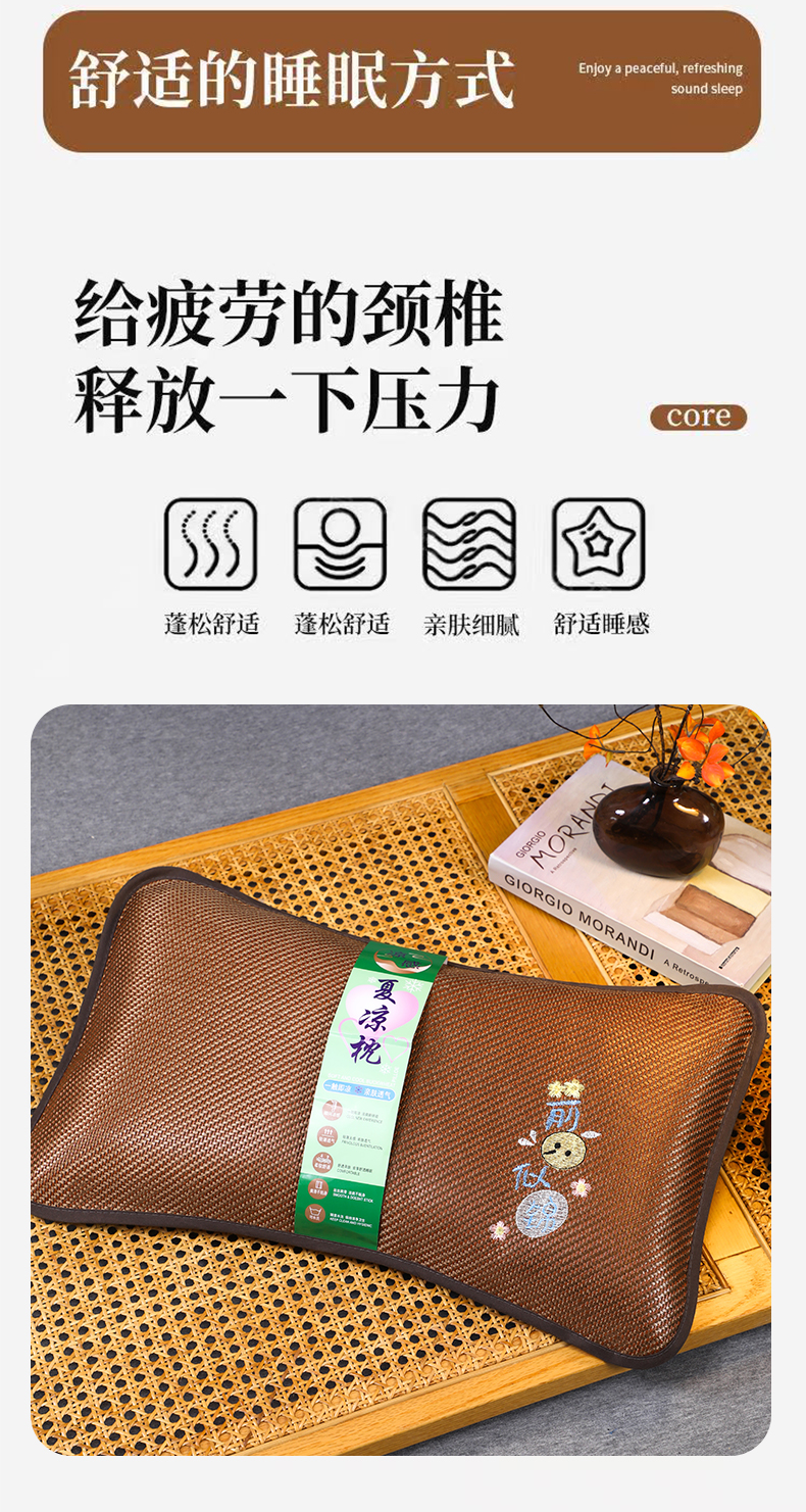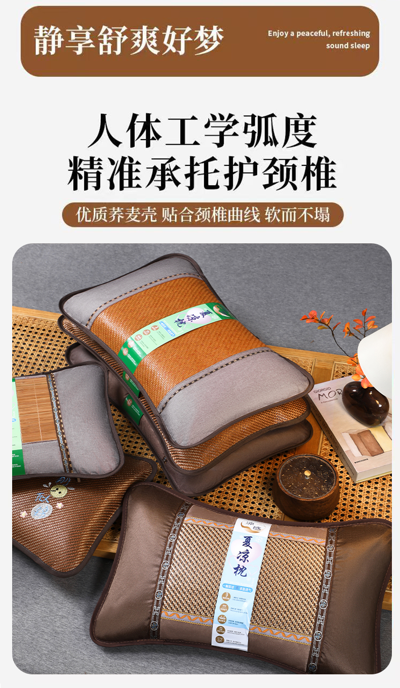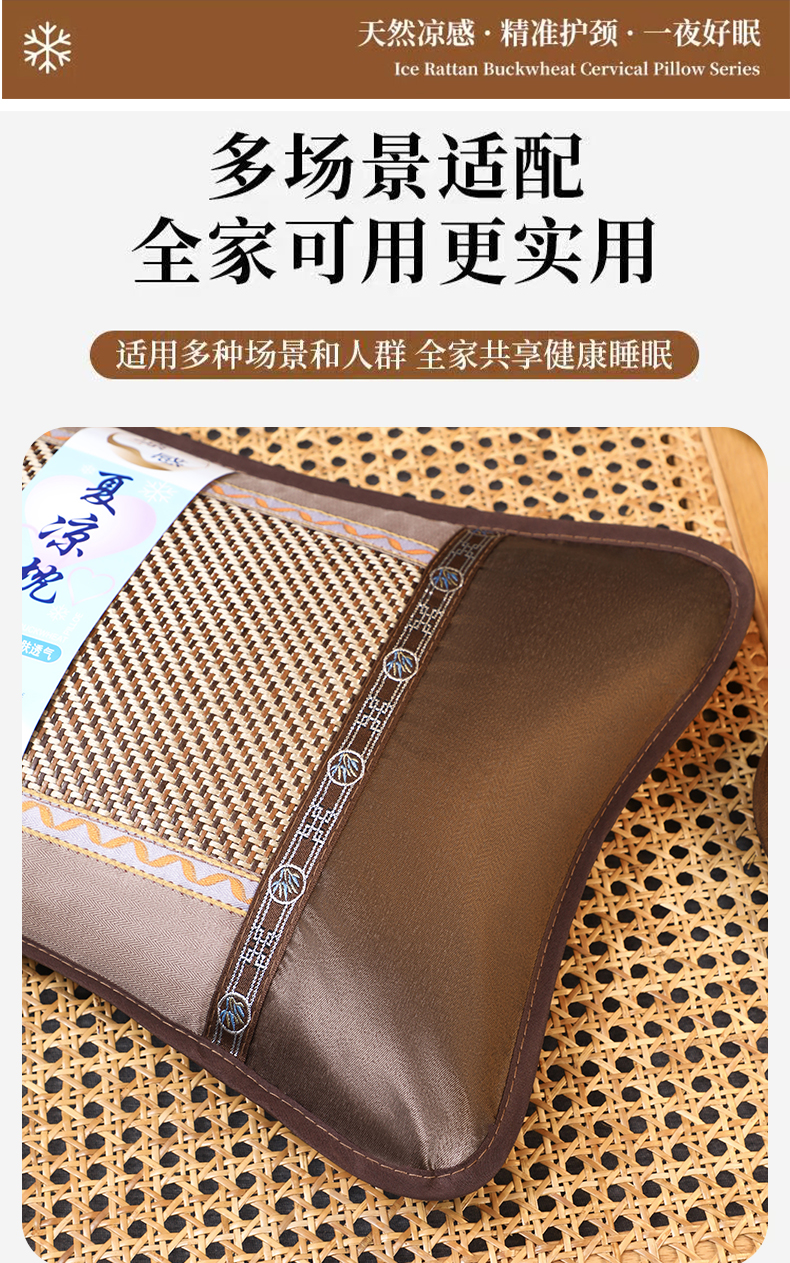 商品名称:(总)芯洲 2026年新款夏季冰凉清爽藤席凉席荞麦枕头枕芯
