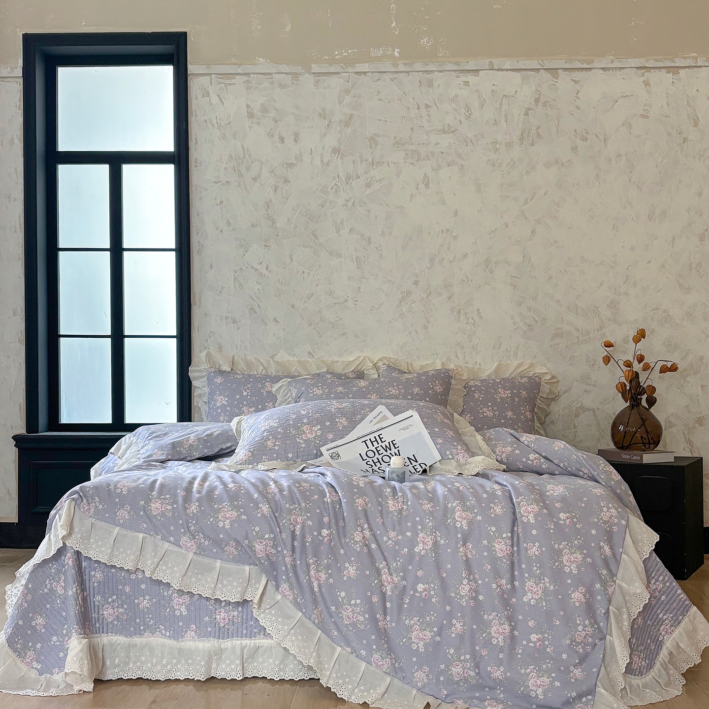 (总)满座家居 2026新款法式纯棉花边全棉床盖四件套小碎花田园风四件套,奶油泡芙,幻境,洛可可,木马,南枝,青禾,甜心,知梦,紫韵