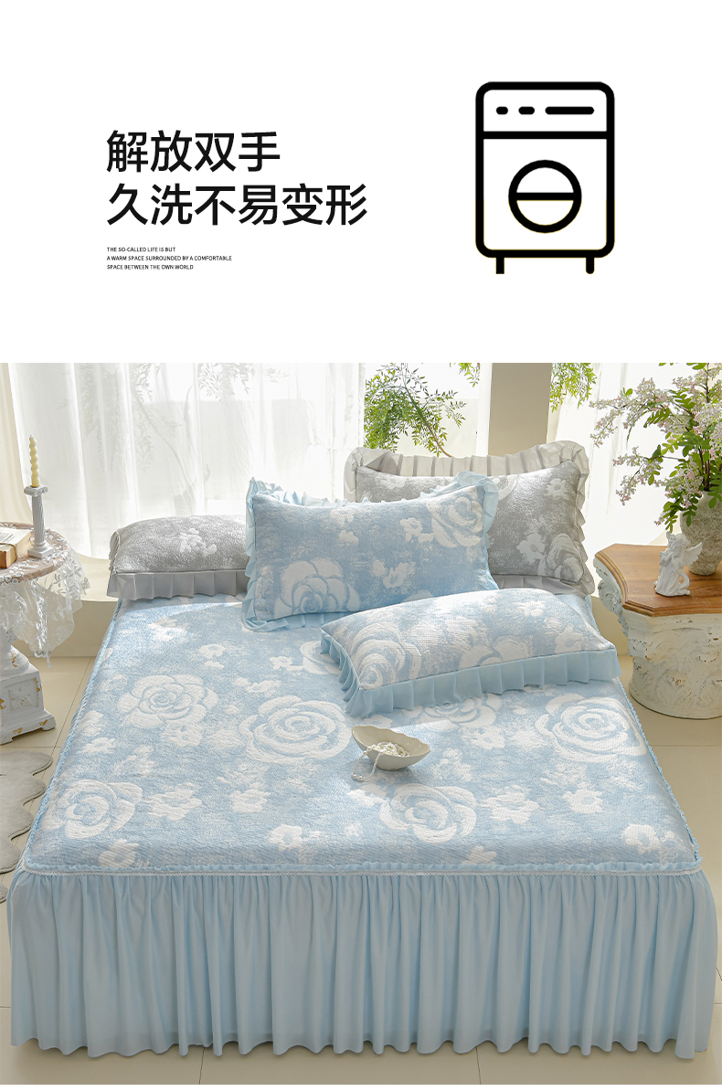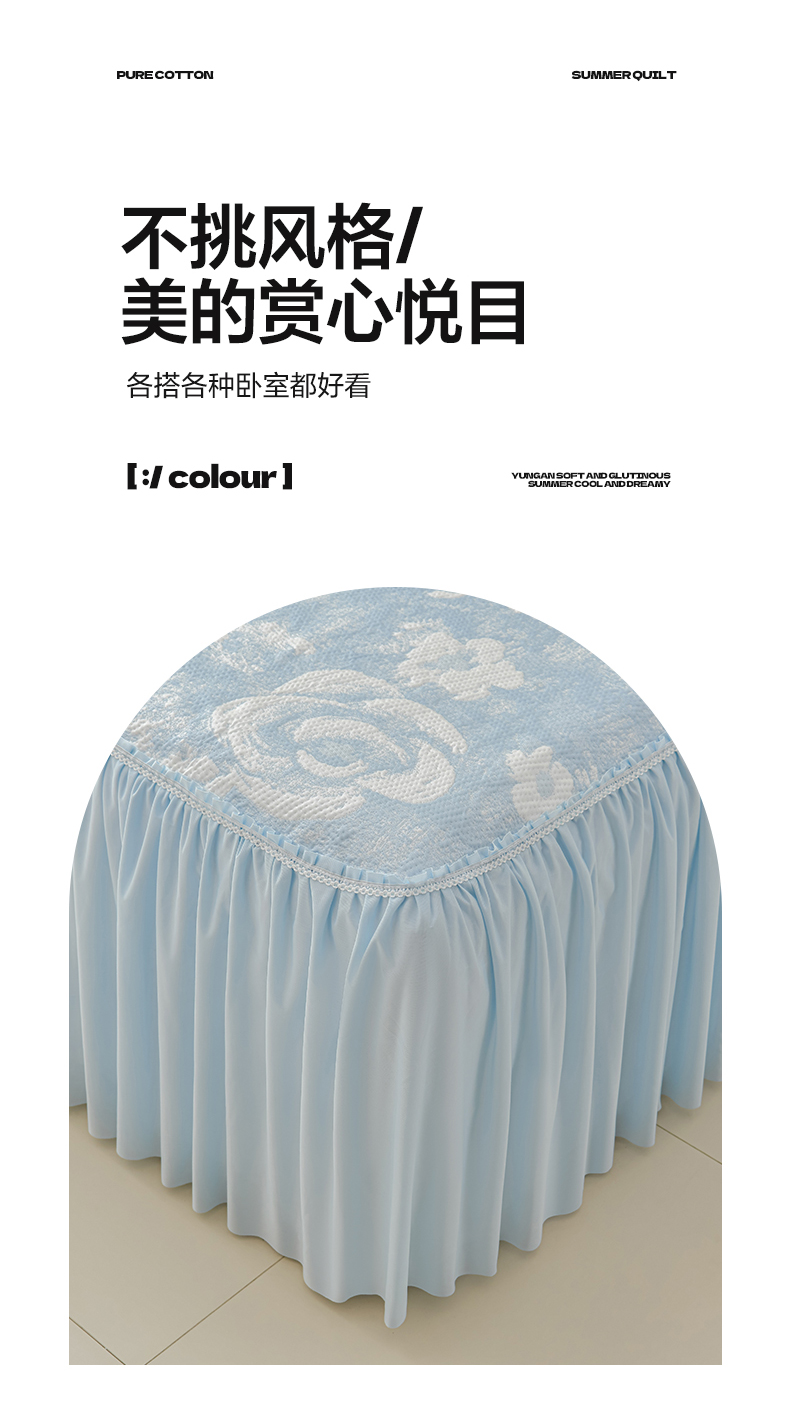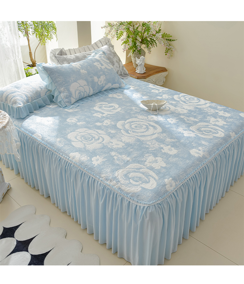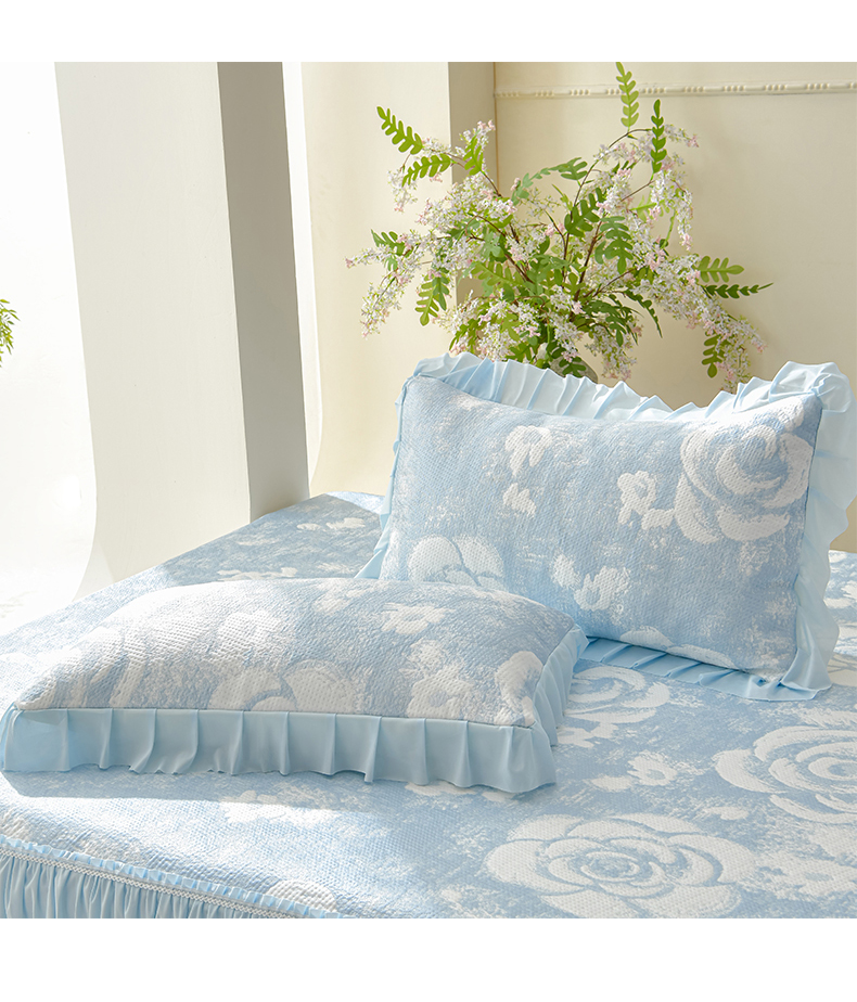 商品名称:绘萱家居 2026春夏新款530克PE100%提花冰凉豆豆床裙款凉席席子空调软席 云裳玫瑰-蓝