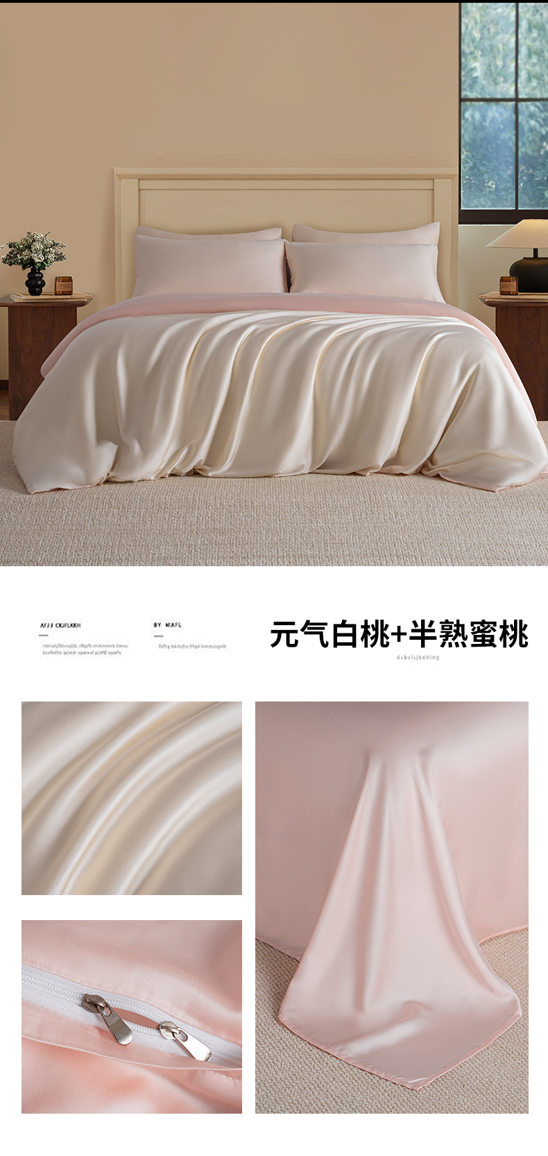 当前位置: 91家纺网 > 商品网购 > 床品套件 > 四件套 > 莱赛尔四件套 > 美澳家纺 2026新款60S兰精天丝双拼四件套(带标) 元气白桃+半熟蜜桃